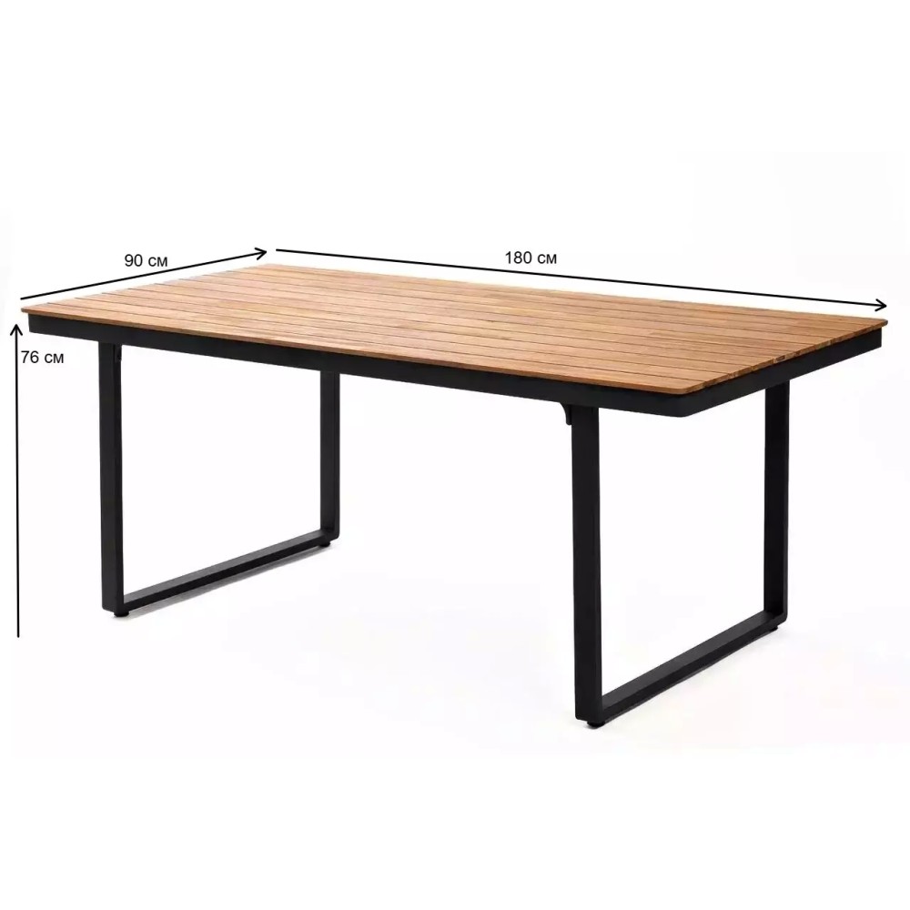 Особенности конструкции: Современный минимализм, сочетание алюминиевого каркаса и натуральной текстуры акации, эргономичная высота стола (76 см) для комфортной посадки, вместительная прямоугольная столешница, легкость конструкции для удобного перемещения