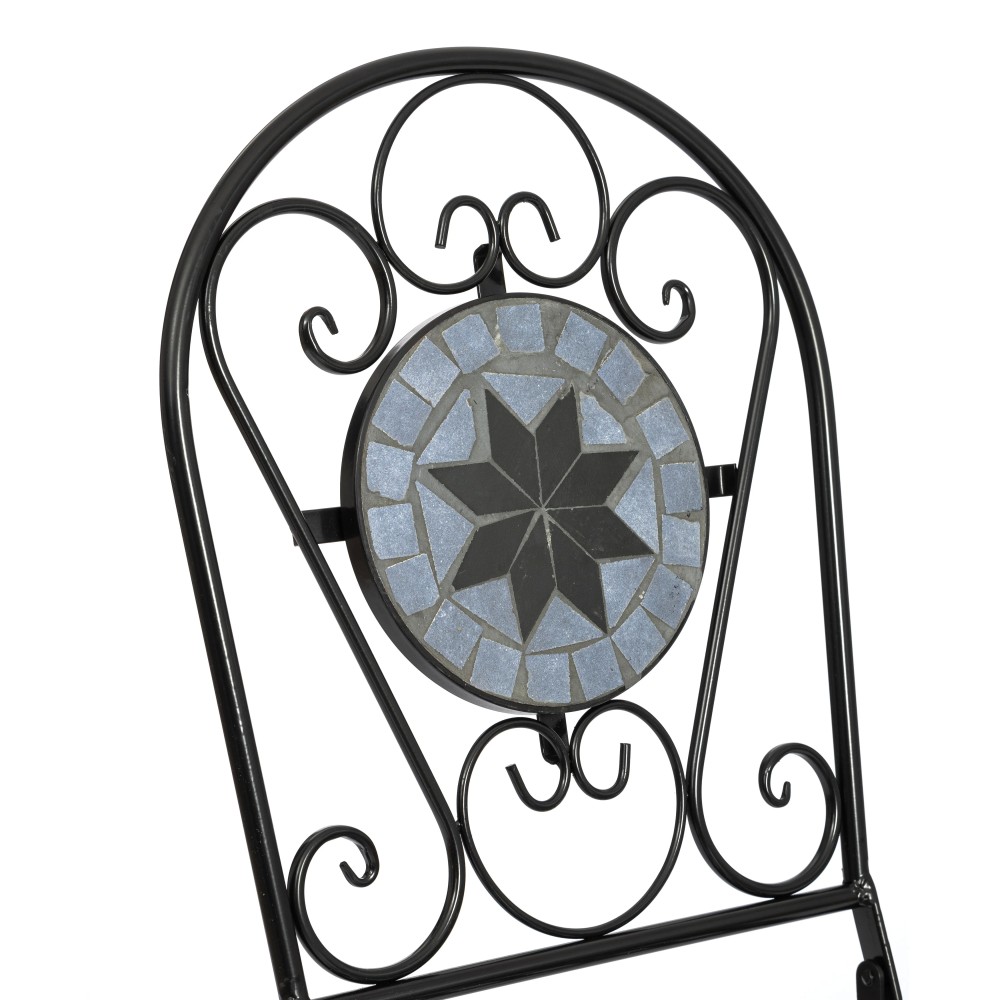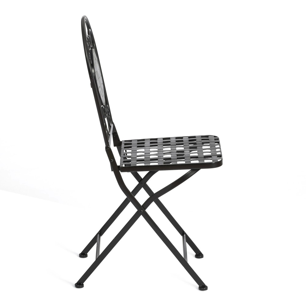 Изящная форма и изысканный дизайн компактного складного стула Secret De Maison Vicenza/Виченза из коллекции Beaujolais/Божоле не только выгодно выделяют его в интерьере, но и помогут создать гармоничное пространство на загородной веранде, городском балконе или приусадебном участке. Спинка, украшенная оригинальным винтажным орнаментом из мозаики и коваными узорами ручной работы, прочный каркас, изготовленный из стального сплава с напылением краски, выглядят дорого, элегантно, добавят ноты изысканности и индивидуальности в ваш интерьер. Стул легко складывается и раскладывается, не занимает много места при хранении. Модель практична, надежна, способна выдерживать большие нагрузки, устойчива к воздействию влаги, температурным перепадам и проста в уходе. Стул Vicenza/Виченза прекрасно сочетается со столом Secret de Maison Romeo/Ромео и с мебелью из коллекции Beaujolais/Божоле, поставляется в собранном виде. Для вашего удобства на сиденье можно дополнительно приобрести декоративную подушку из нашей коллекции текстиля.