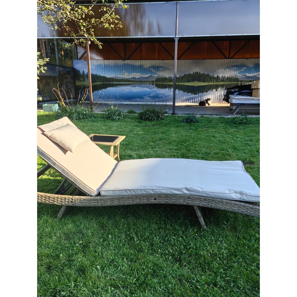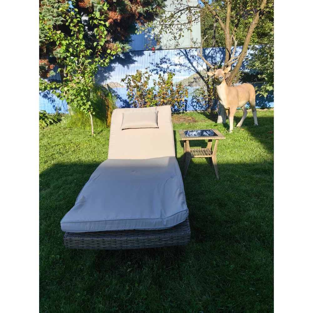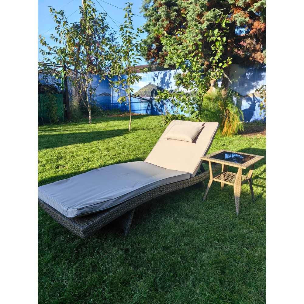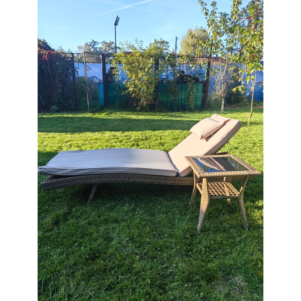 Комплект мебели из искусственного ротанга МАРА “MARA” Greige, шезлонг и столик
