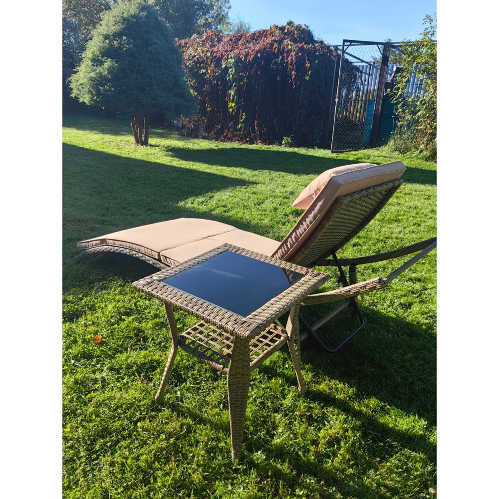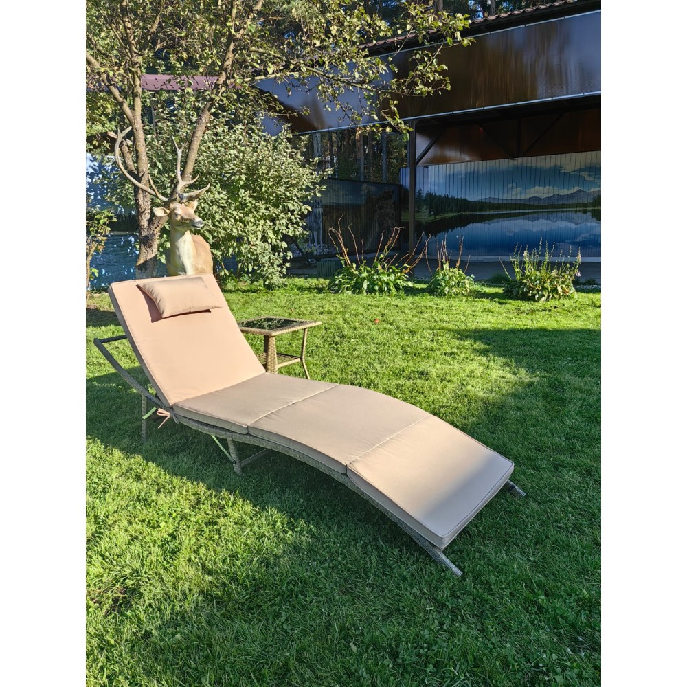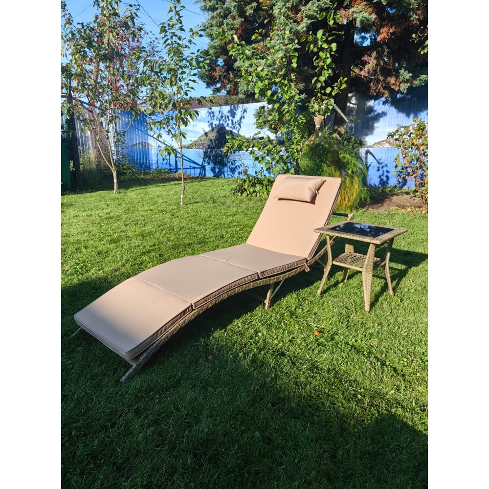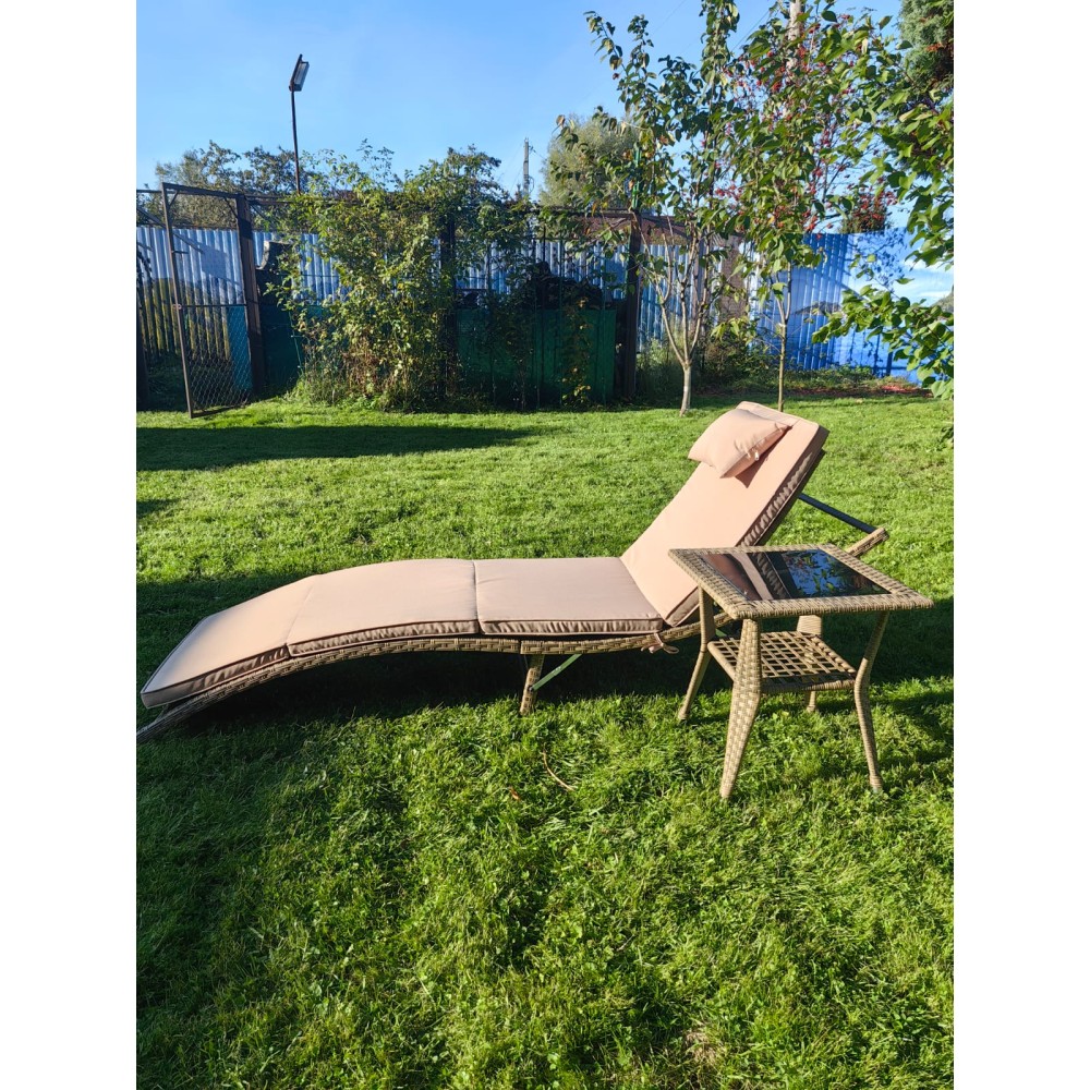 Комплект мебели под искусственный ротанг шезлонг Ливерпуль и столик Мара-2 Greige
