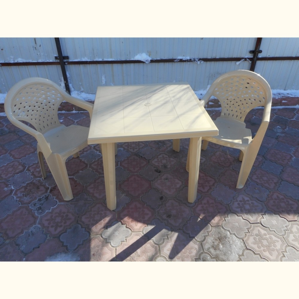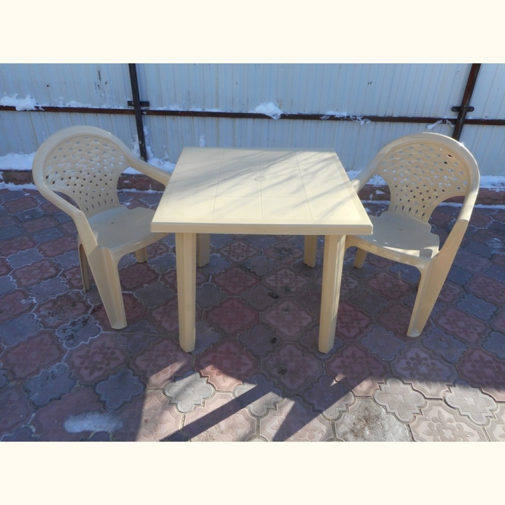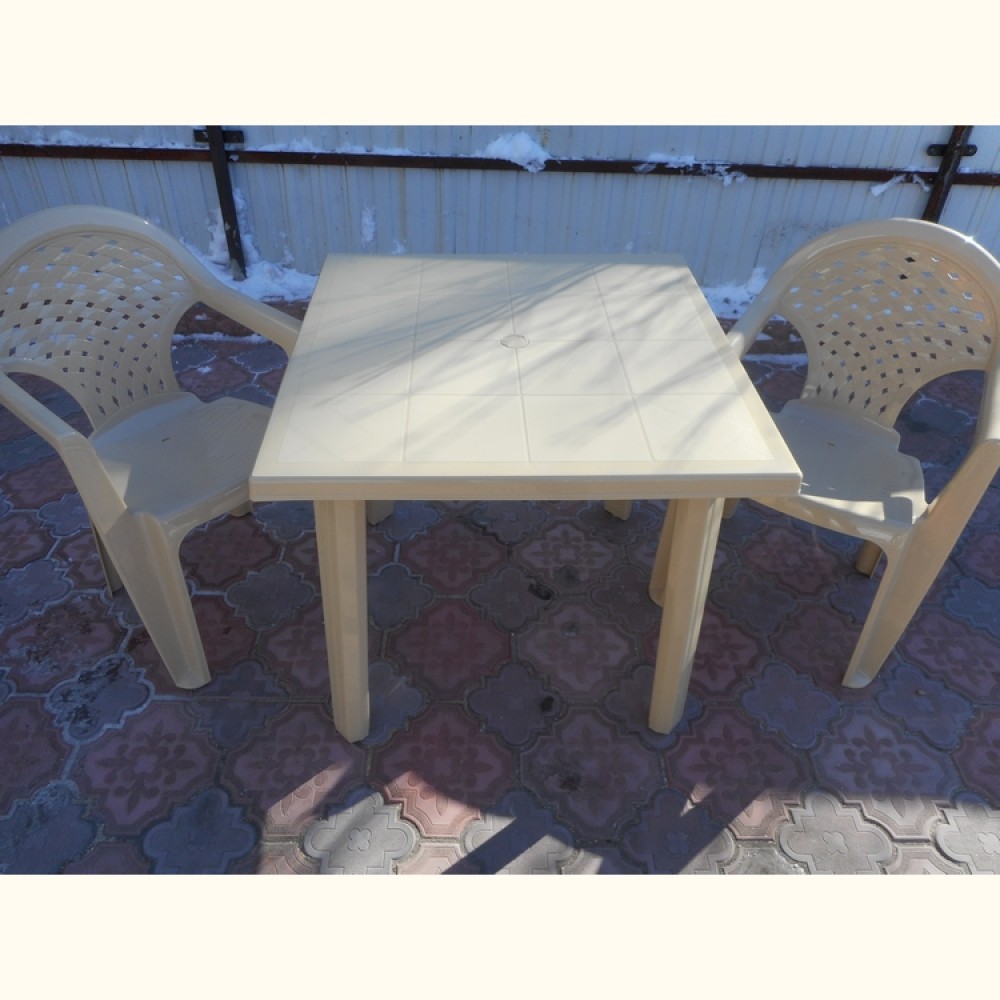 Комплект пластиковой мебели (стол квадратный «Дублин» 800х800 бежевый + 2 кресла «Барселона» бежевых)