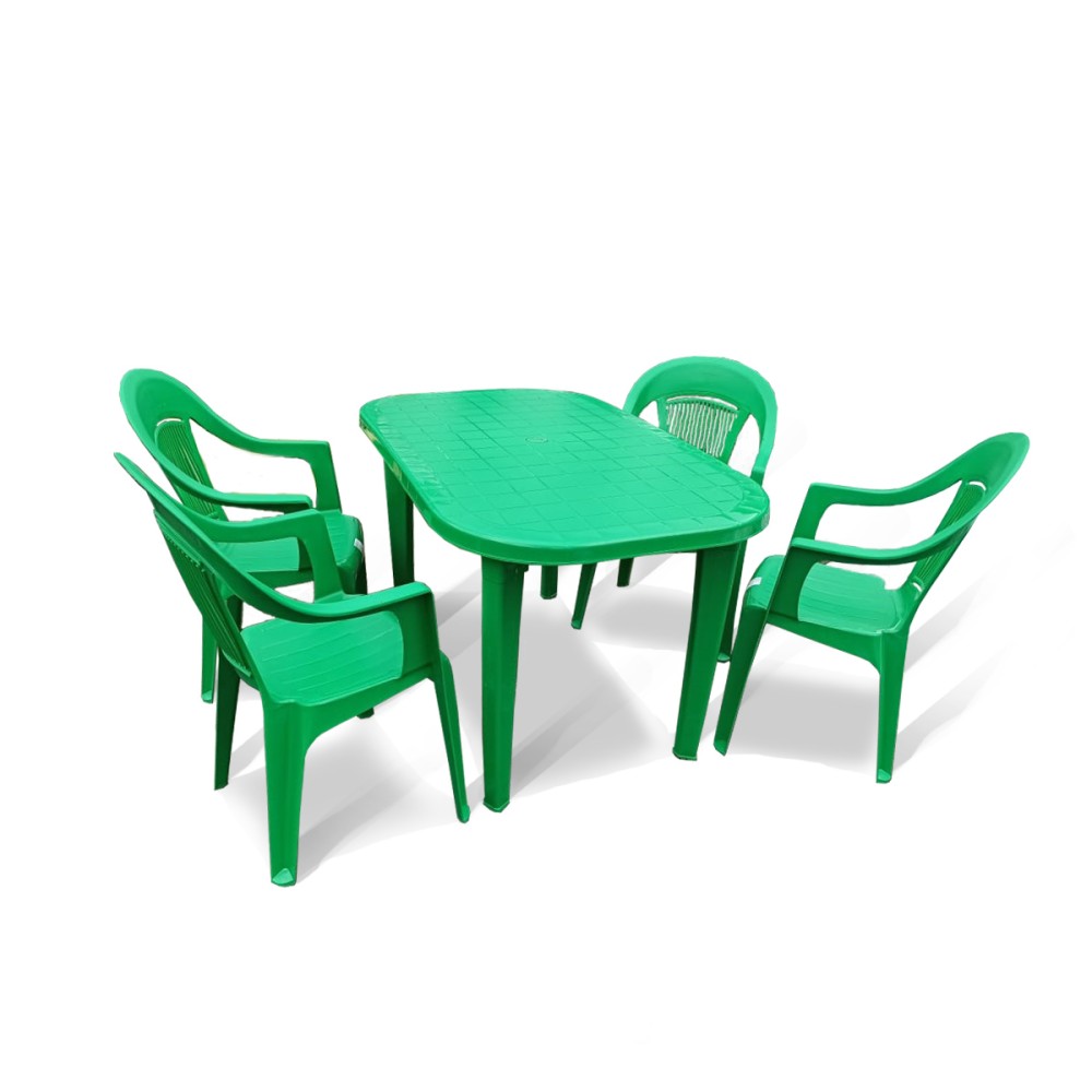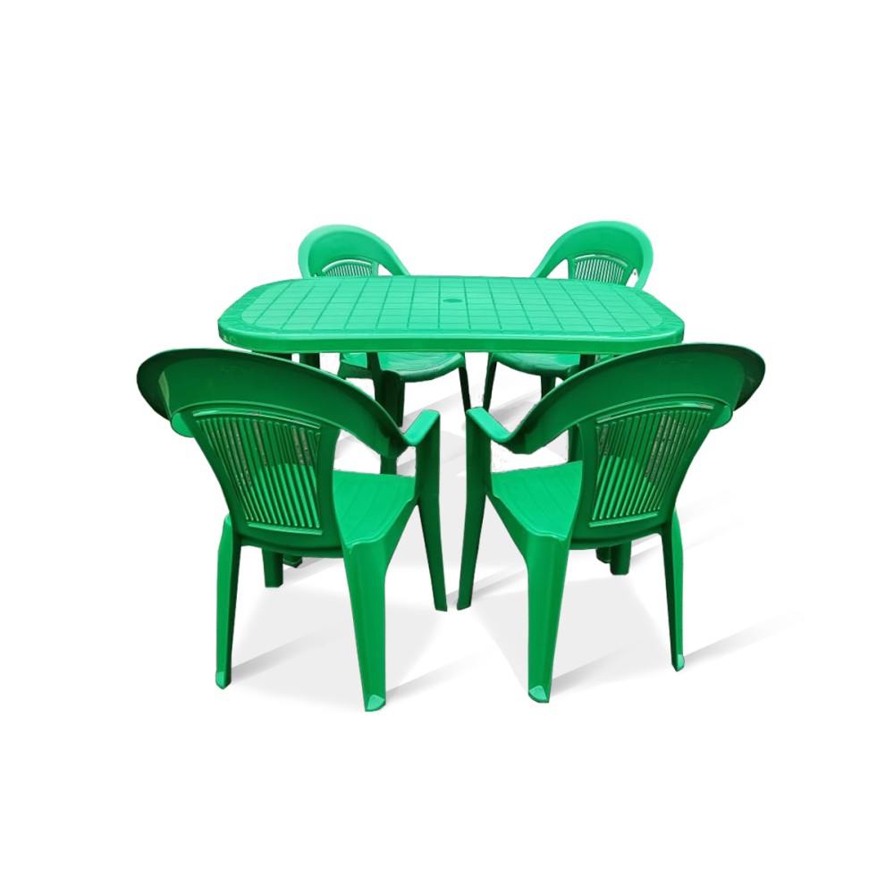 Комплект пластиковой мебели стол Новара + 4 кресла Элегант зеленый