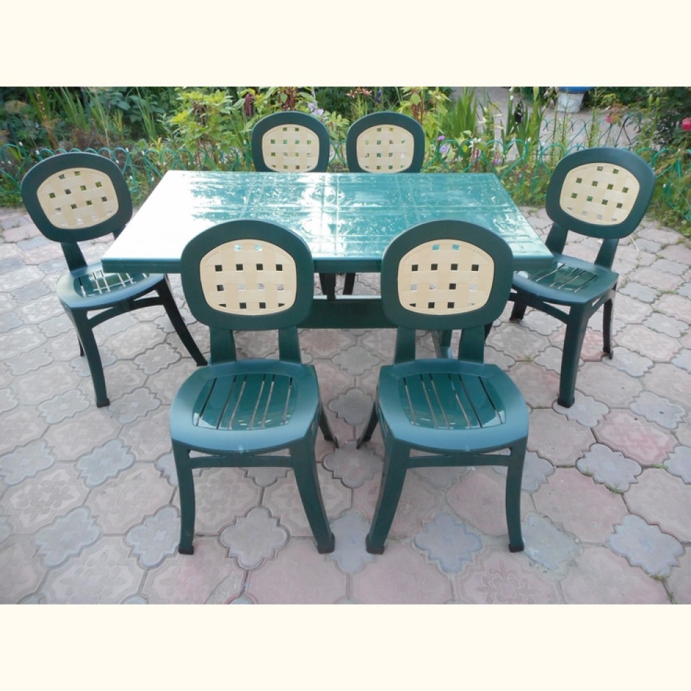 Комплект пластиковой мебели стол прямоугольный "Престиж" 1400 х 800 мм+ 6 стульев "Цертоса" прекрасно подходит для отдыха на даче.