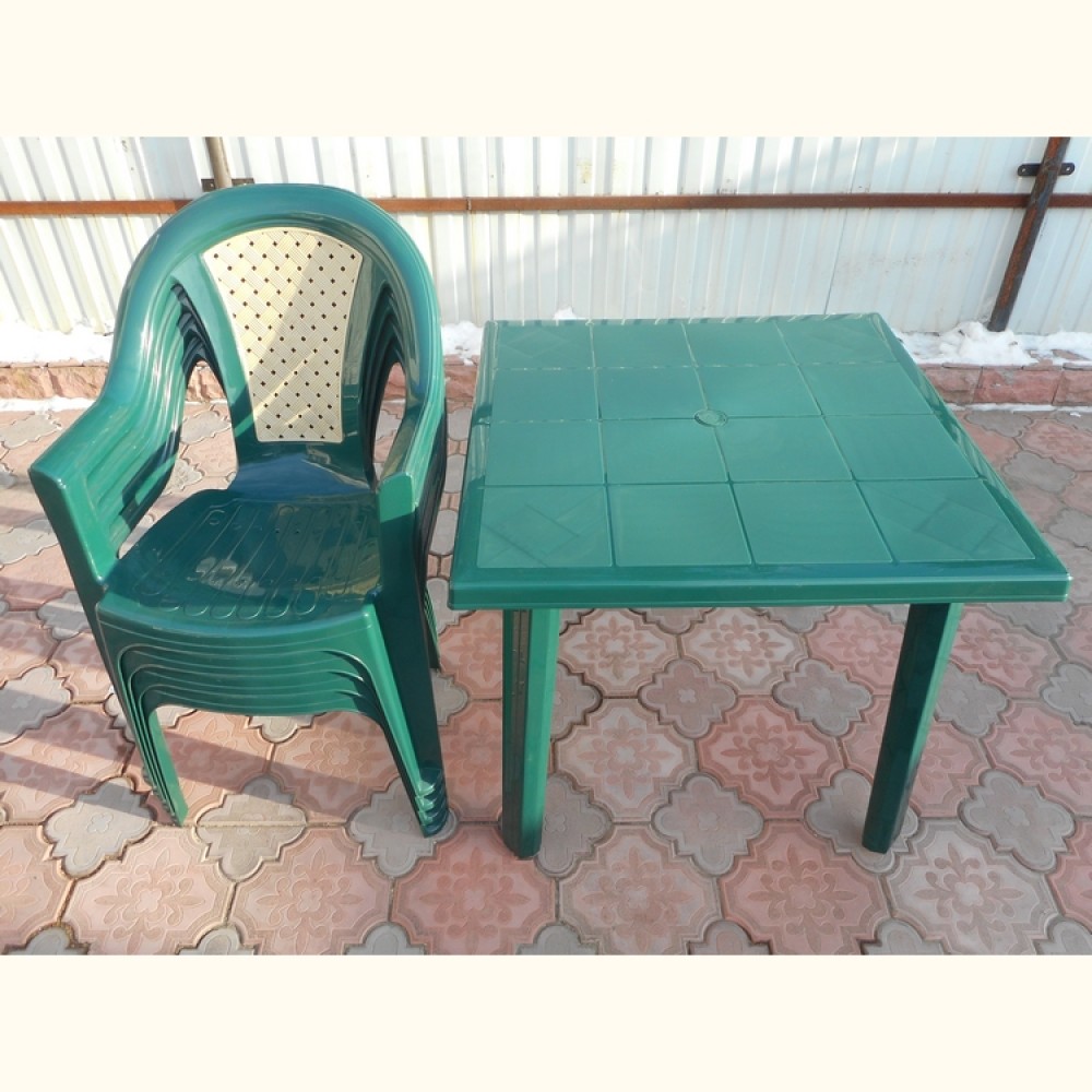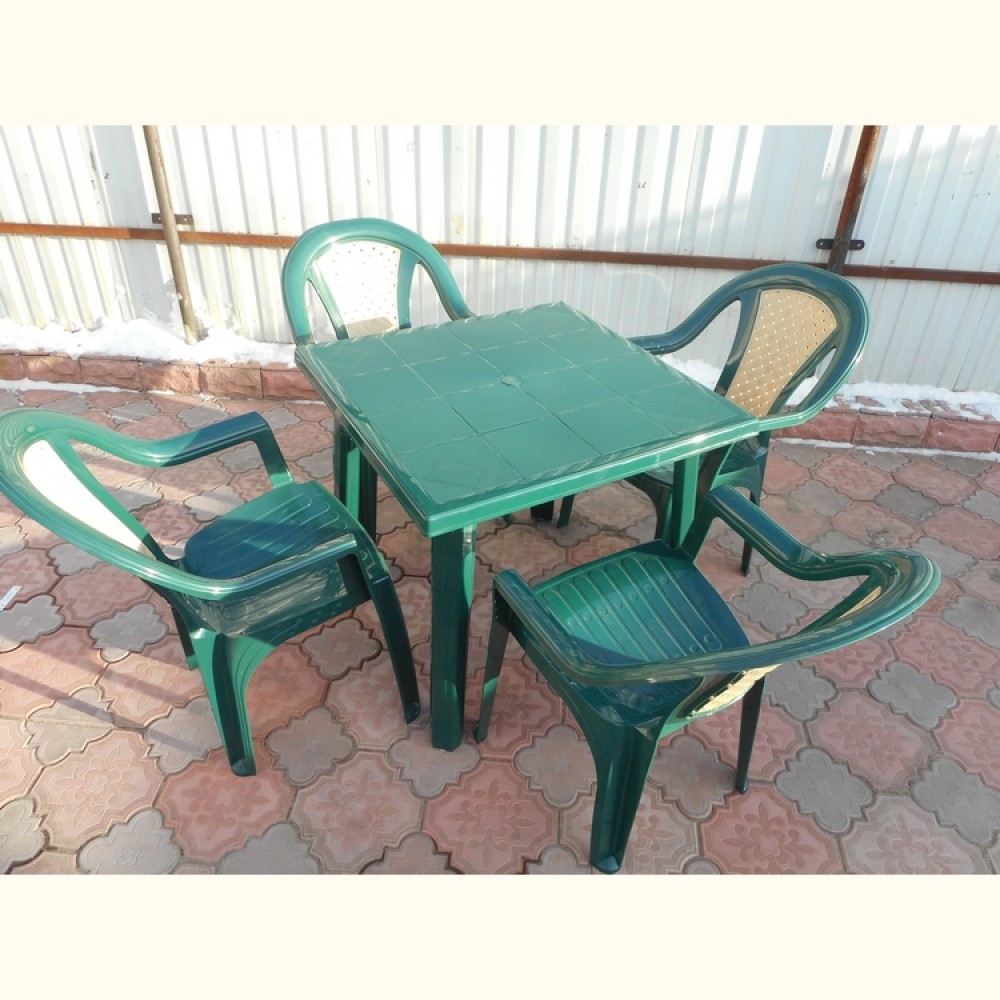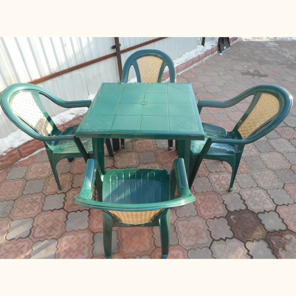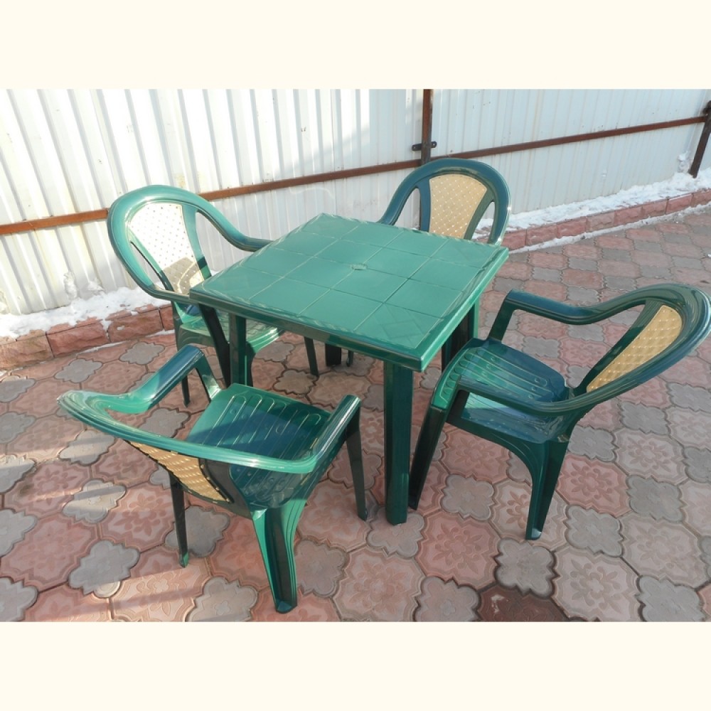 Комплект пластиковый мебели стол Дублин 80х80 зеленый + 4 кресла Элен зеленый
