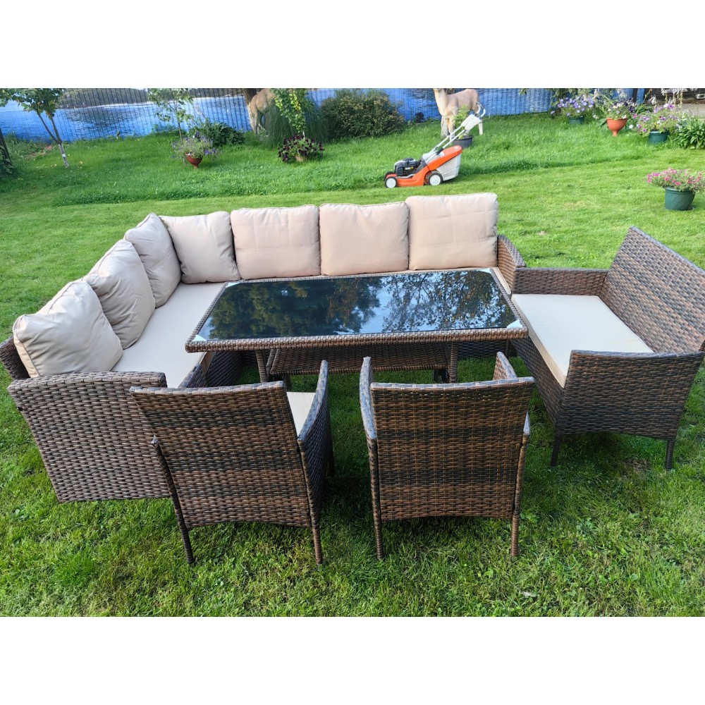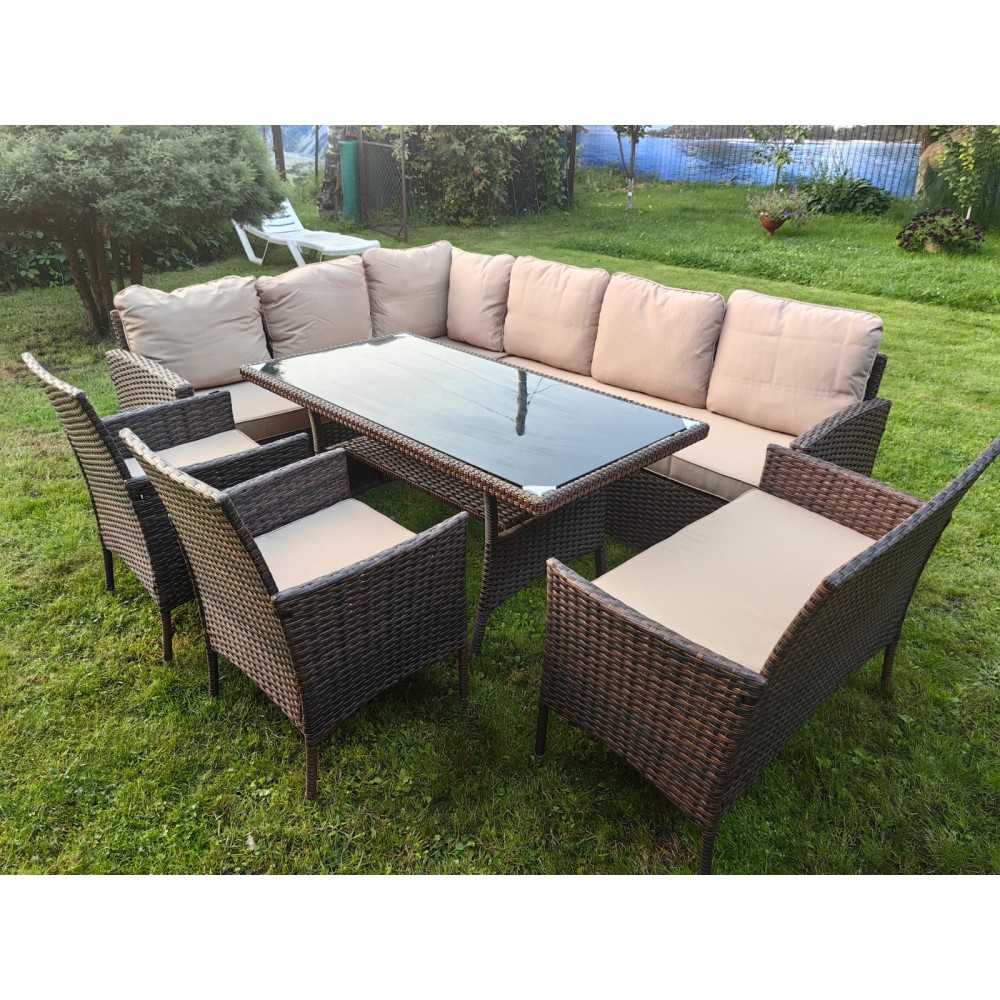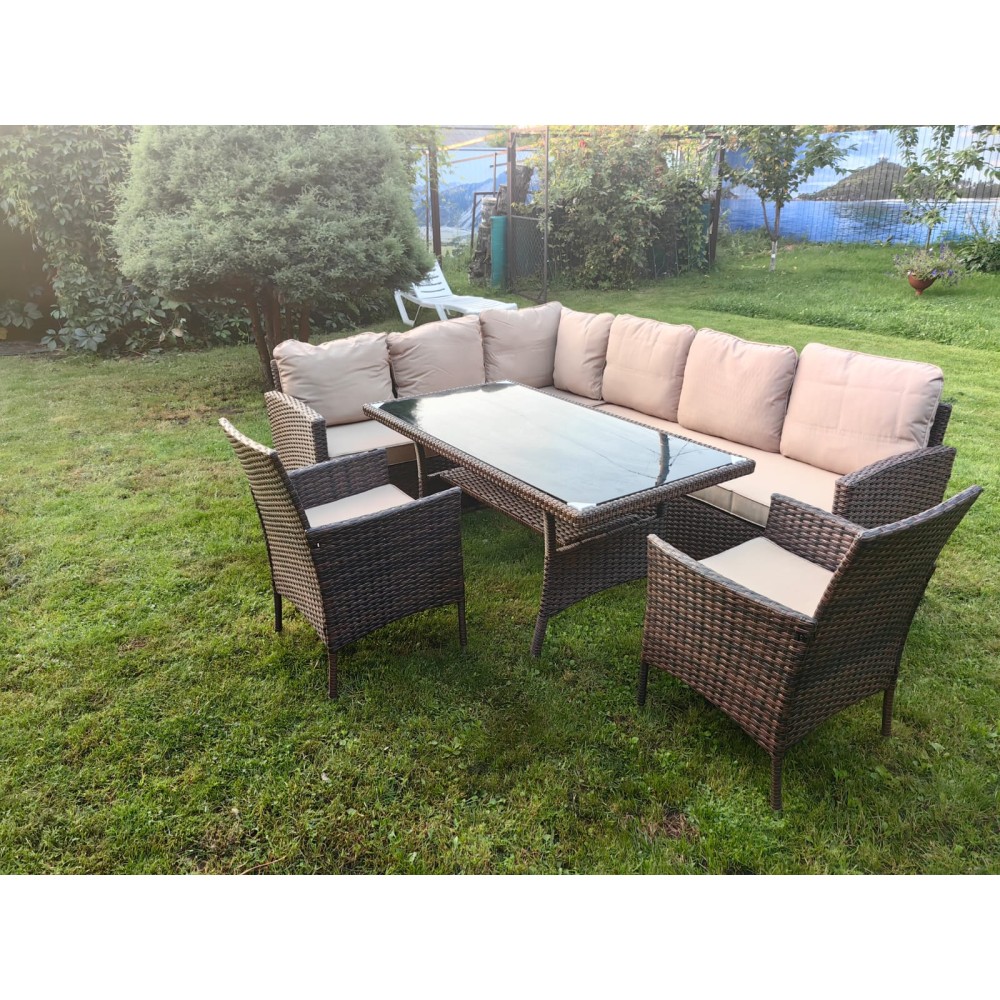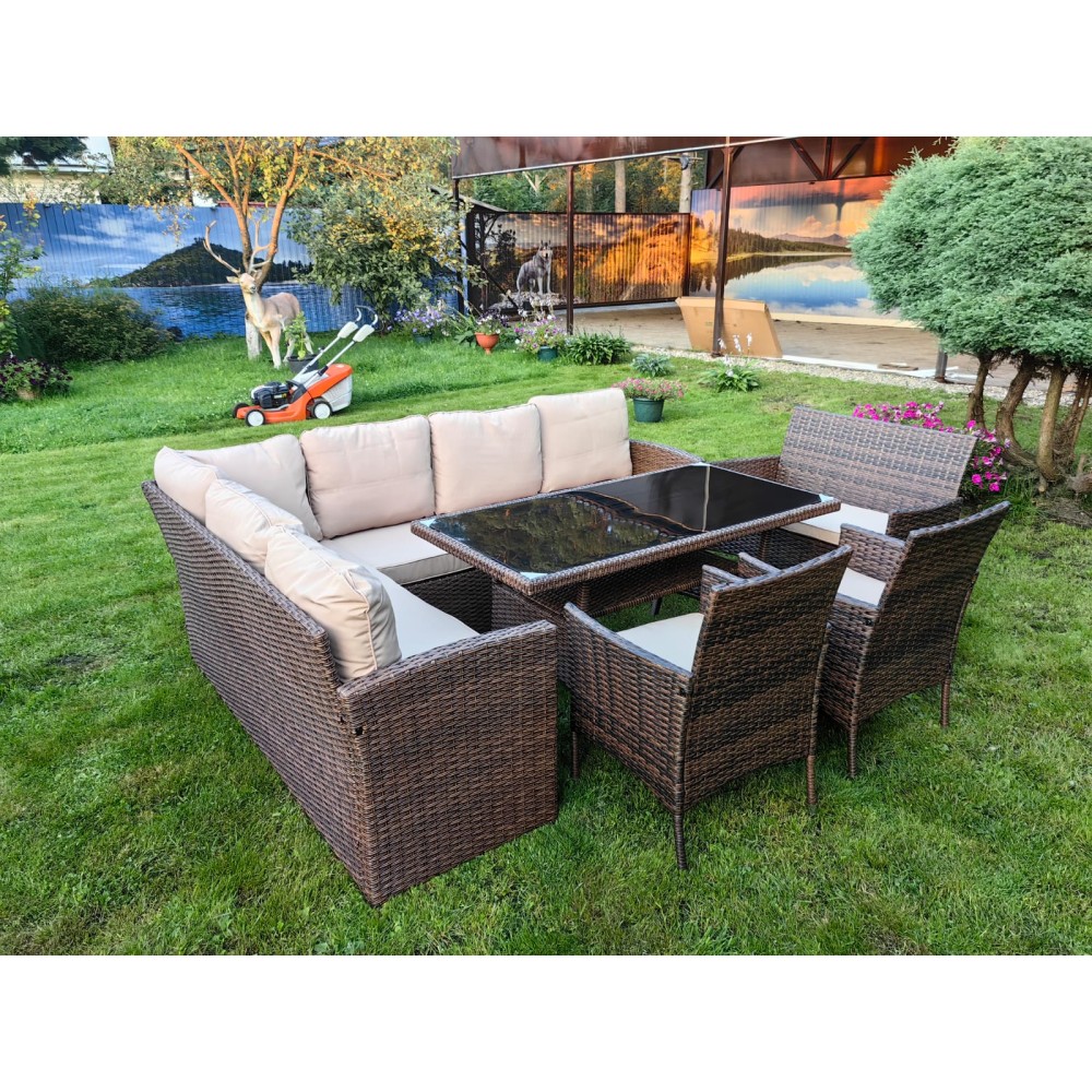 Обеденная группа плетеной мебели Албания + 2 кресла + двухместный диван Анкор Шоколад