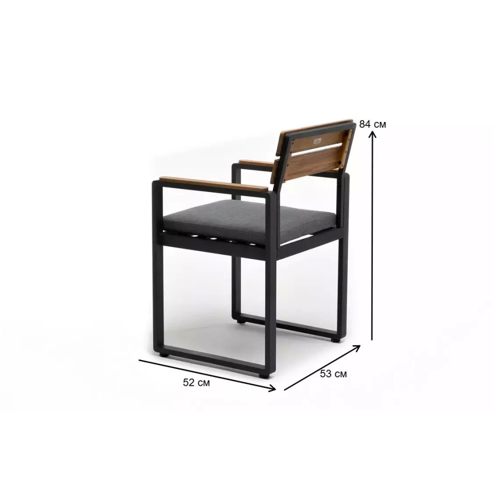 Особенности конструкции: Современный минимализм, сочетание алюминиевого каркаса и натуральной текстуры акации, эргономичная высота спинки (84 см) для комфортной поддержки, компактная ширина (53 см) для рационального использования пространства, мягкая подушка в комплекте