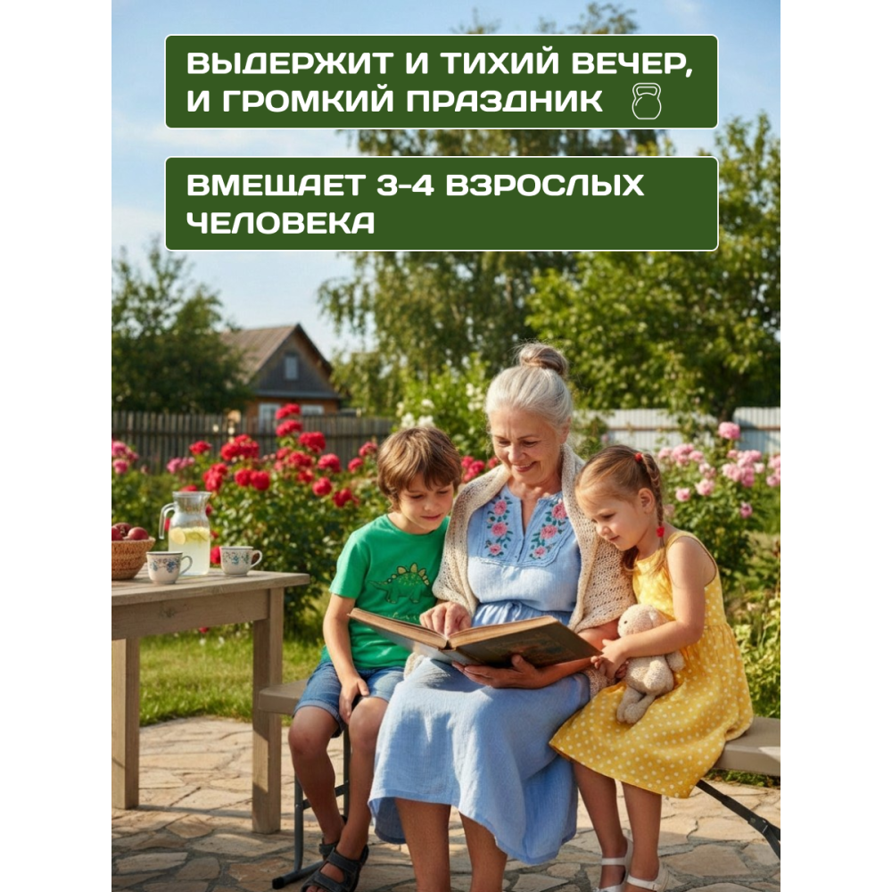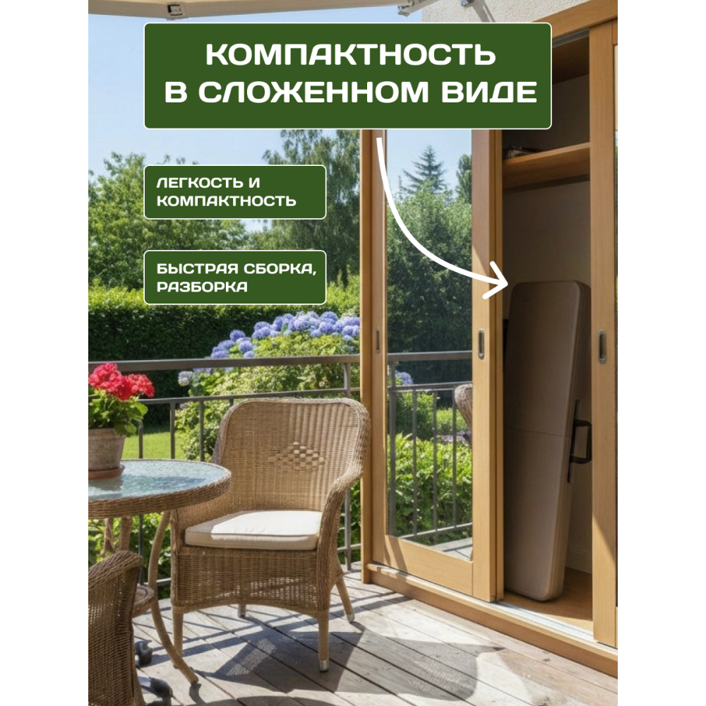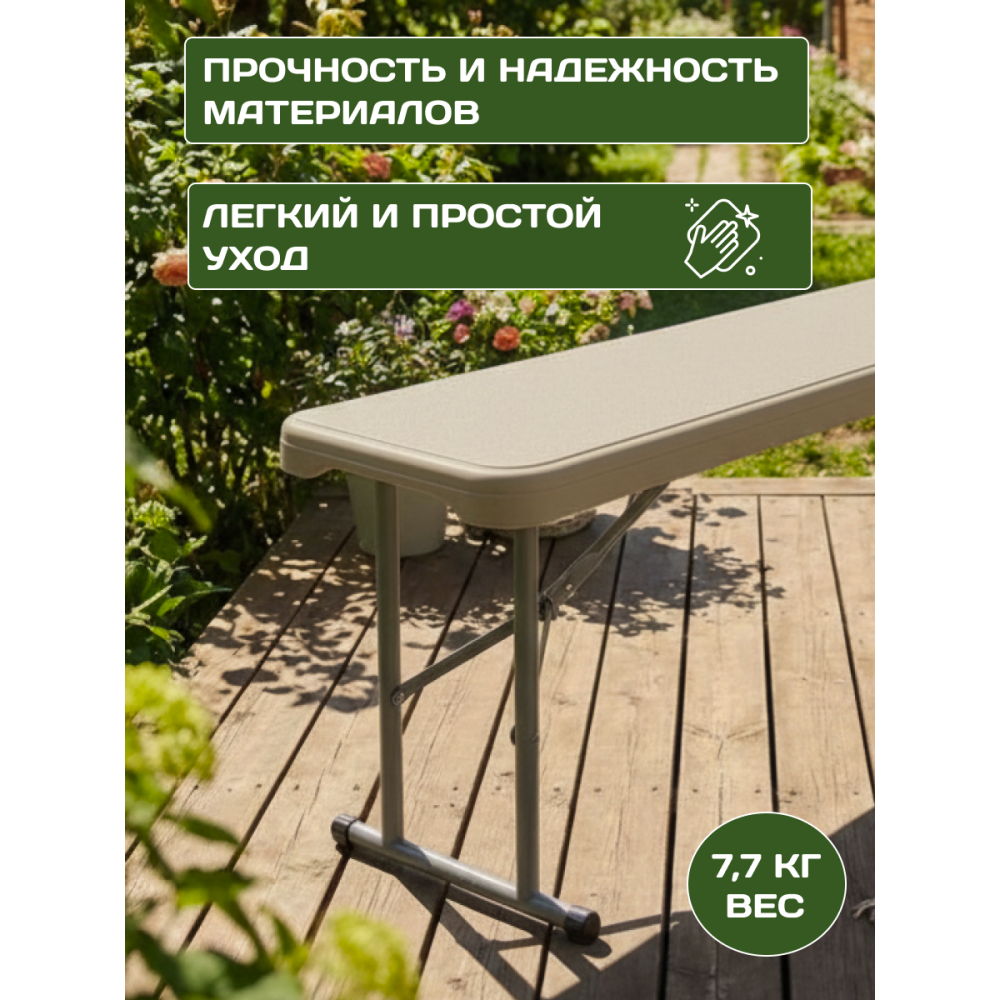 Пластиковая складная скамья с украсит собой любой дачный участок или летнее кафе. Данная скамья с комфортом разместит 3-4 человека. За ней легко ухаживать и она не боится дождя. Она очень устойчивая и её легко перевозить. При этом складная скамейка с дизайном ротанга всегда смотрится стильно и респектабельно.