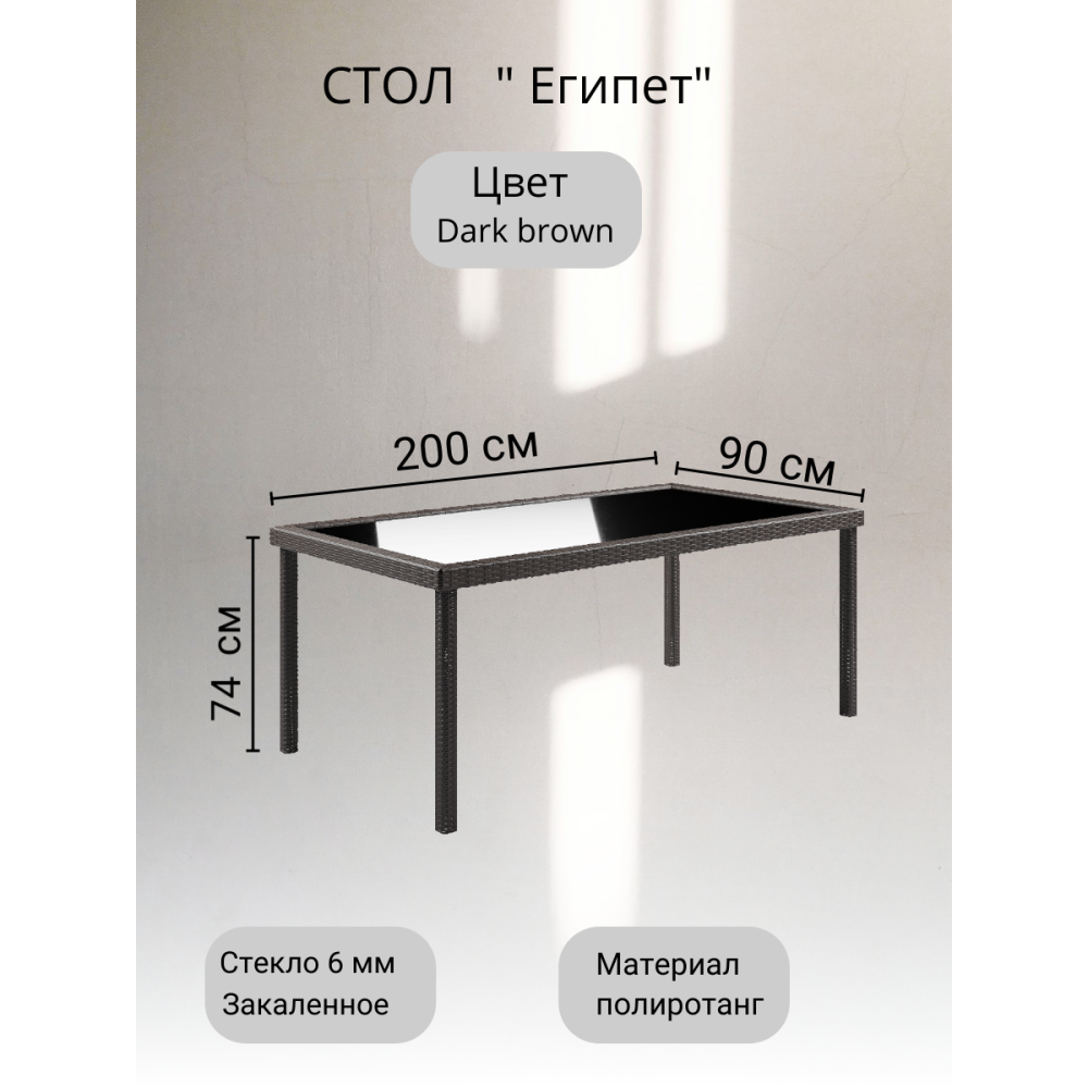 Стол из искусственного ротанга “EGYPT” размером 200х90 см - идеальное решение для тех, кто хочет добавить комфорта и стиля в свой интерьер. Изготовленный из качественного и прочного материала, он не только выглядит элегантно, но и отличается высокой устойчивостью к износу и влаге. Этот стол прекрасно подойдет как для использования в помещении, так и на открытой площадке, такой как терраса или веранда. Благодаря своей универсальности, он легко сочетается с любым интерьером и станет центром притяжения внимания в вашем доме.