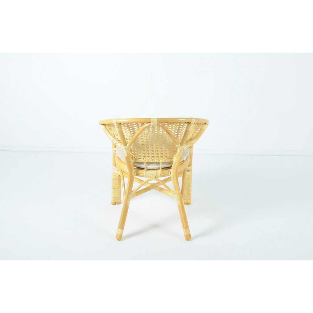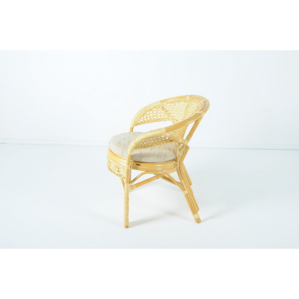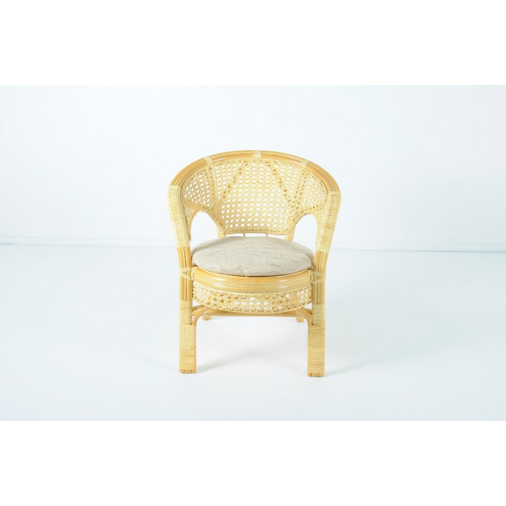Каркас - натуральный ротанг, подушка - ткань рогожка с мягким наполнителем.