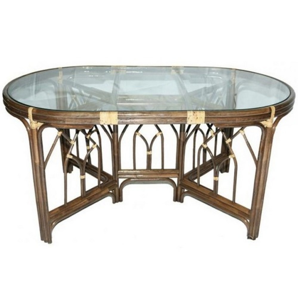 Каркас - натуральный ротанг, столешница - стекло.