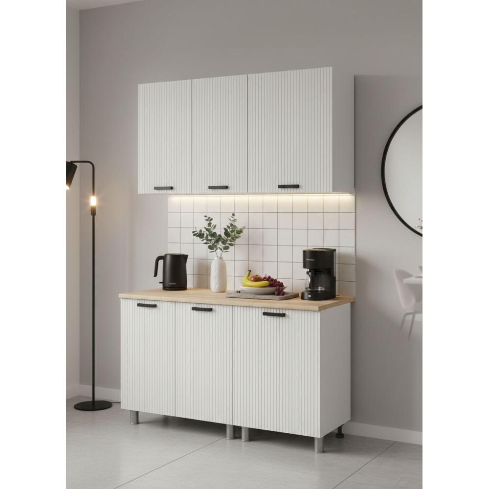 Фрезеровка этой коллекции – актуальный интерьерный приём, который уже стал частью современной классики. Она не перегружает кухню визуально, но придаёт ей ритм и характер.