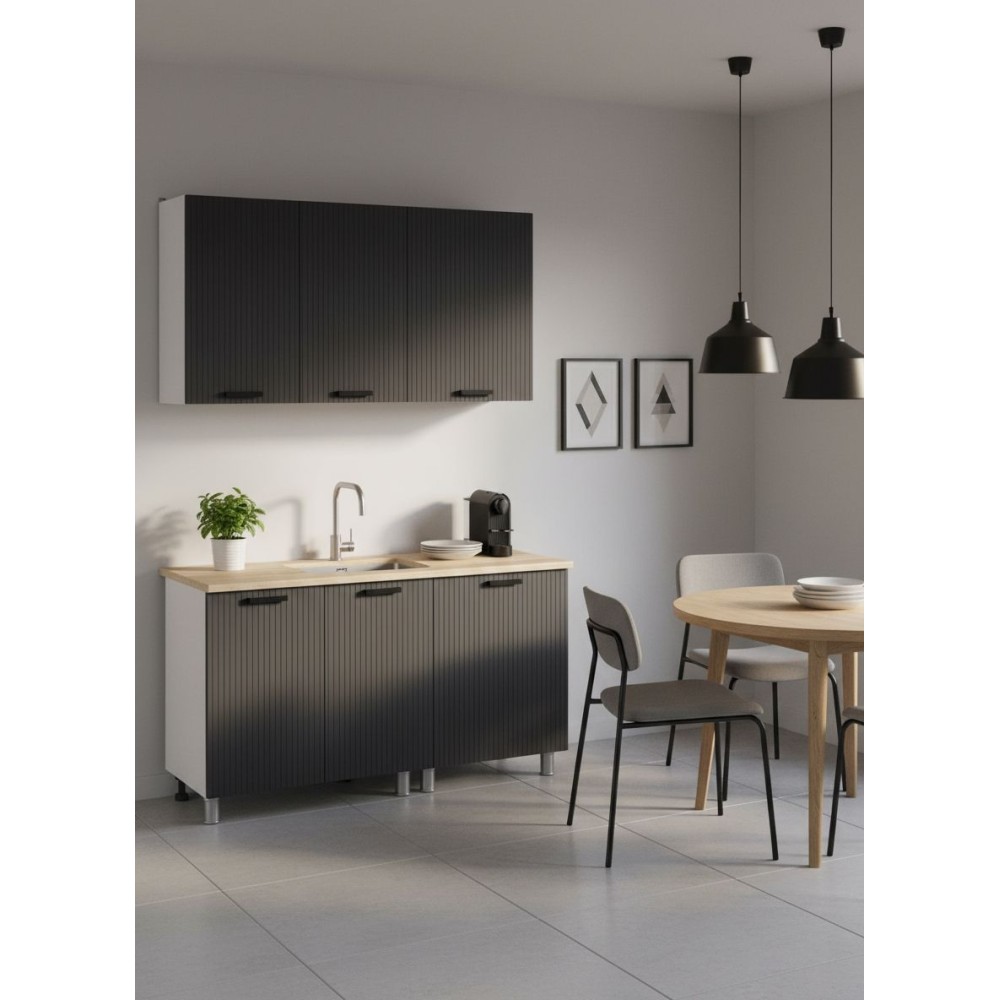 Фрезеровка этой коллекции – актуальный интерьерный приём, который уже стал частью современной классики. Она не перегружает кухню визуально, но придаёт ей ритм и характер.