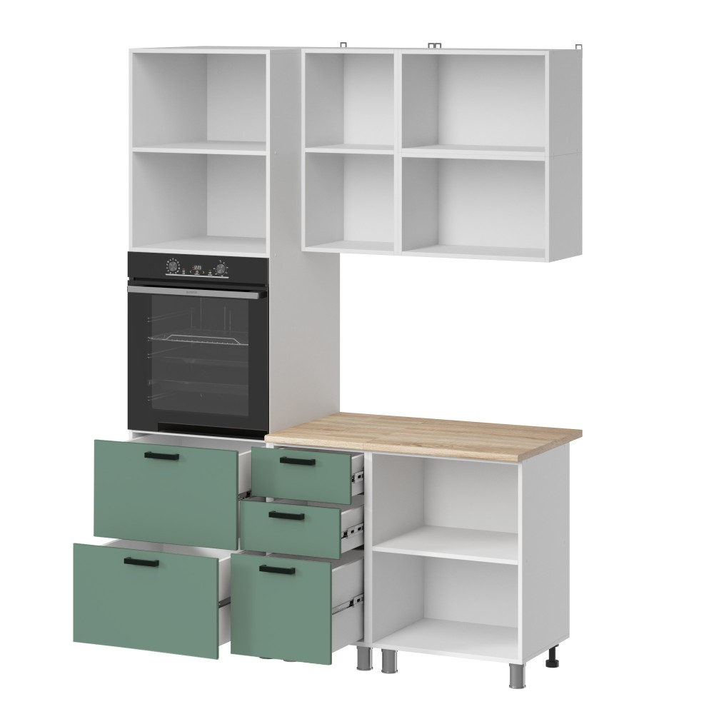 Материал устойчив к выцветанию и воздействию бытовой химии, прост в уходе и рассчитан на длительную эксплуатацию. Поверхность обладает повышенными гидрофобными свойствами, что делает кухню практичной и удобной для ежедневного использования.