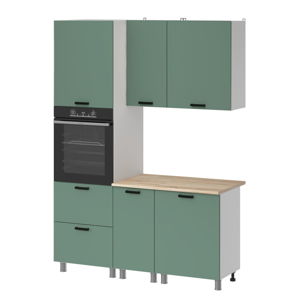 Материал устойчив к выцветанию и воздействию бытовой химии, прост в уходе и рассчитан на длительную эксплуатацию. Поверхность обладает повышенными гидрофобными свойствами, что делает кухню практичной и удобной для ежедневного использования.