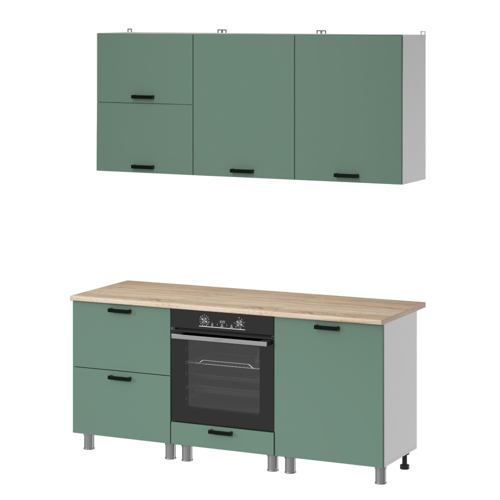 Материал устойчив к выцветанию и воздействию бытовой химии, прост в уходе и рассчитан на длительную эксплуатацию. Поверхность обладает повышенными гидрофобными свойствами, что делает кухню практичной и удобной для ежедневного использования.