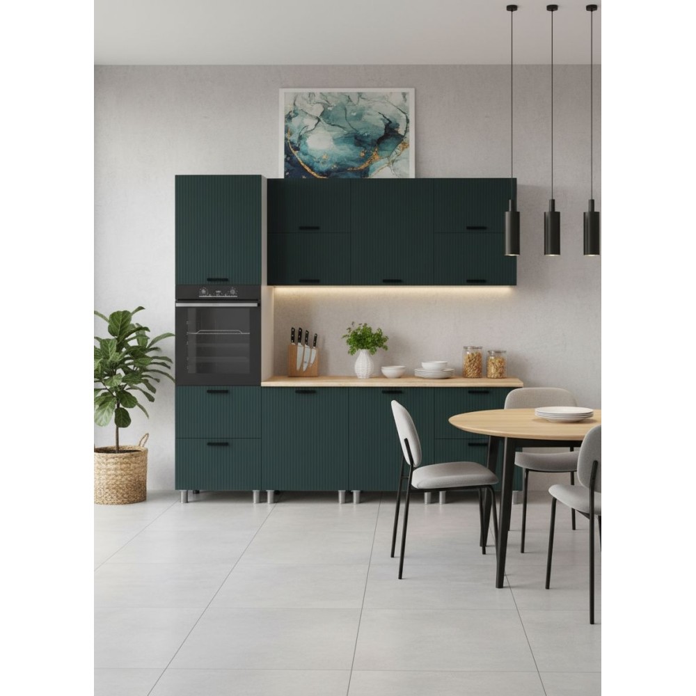 Фрезеровка этой коллекции – актуальный интерьерный приём, который уже стал частью современной классики. Она не перегружает кухню визуально, но придаёт ей ритм и характер.