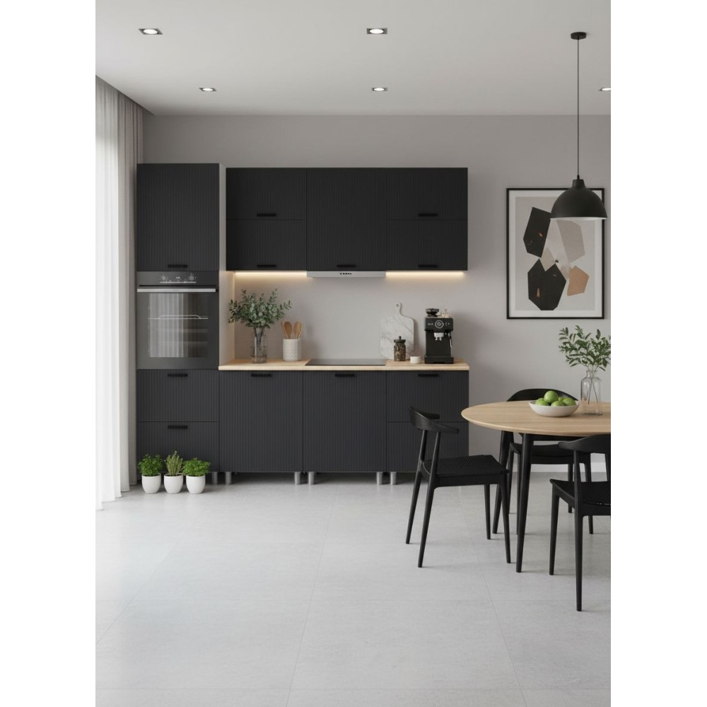 Фрезеровка этой коллекции – актуальный интерьерный приём, который уже стал частью современной классики. Она не перегружает кухню визуально, но придаёт ей ритм и характер.