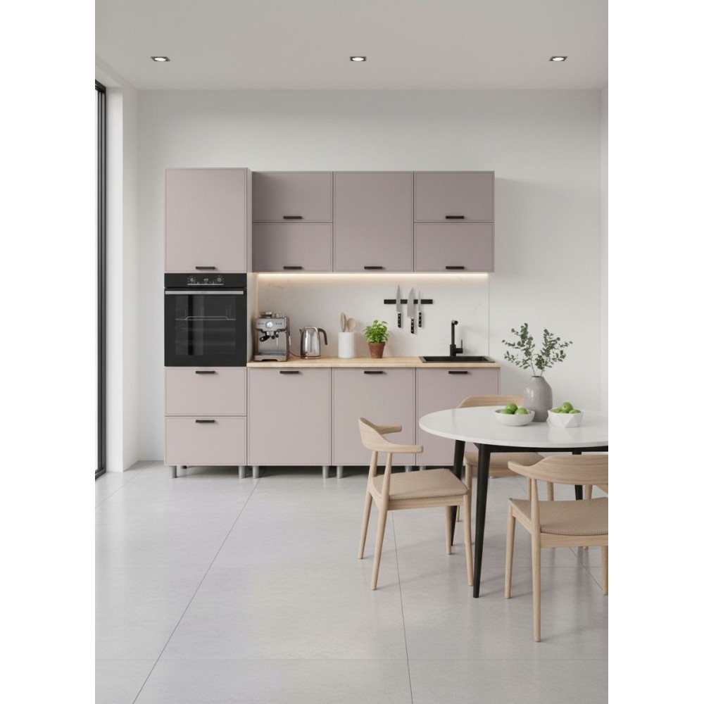 Тонкое фрезерованное обрамление по периметру фасада создаёт чёткую геометрию, подчёркивая формы и придавая кухне элегантность и легкость. Такой минималистичный подход – один из главных трендов 2025 года.