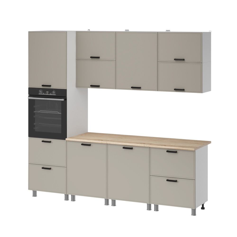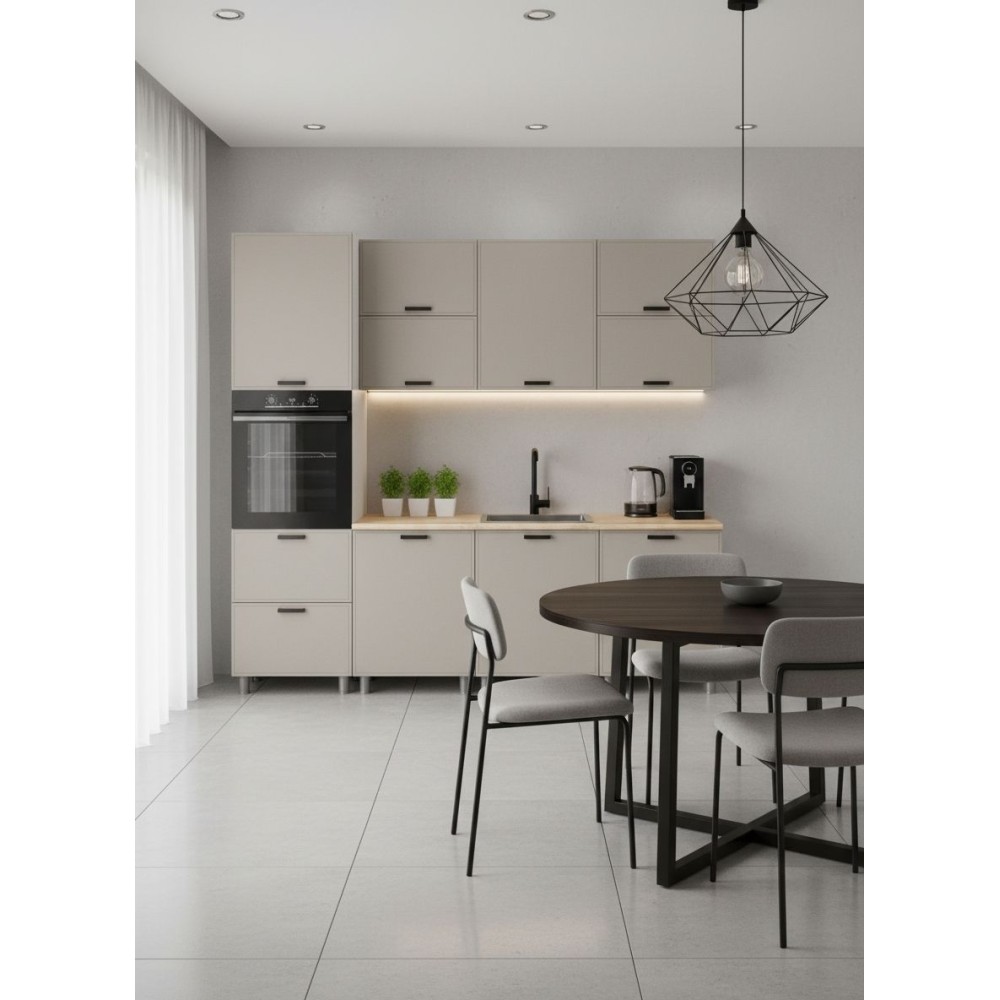 Тонкое фрезерованное обрамление по периметру фасада создаёт чёткую геометрию, подчёркивая формы и придавая кухне элегантность и легкость. Такой минималистичный подход – один из главных трендов 2025 года.