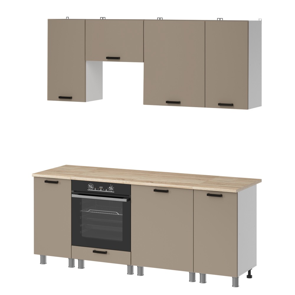Фасады модульной кухни "Орешник" выполнены из современного пластика акрилит, который отличается прочностью, глубиной цвета и эффектным внешним видом. Торцы защищены ПВХ-кромкой 1 мм, что обеспечивает аккуратный вид и защиту от влаги и механических повреждений.
