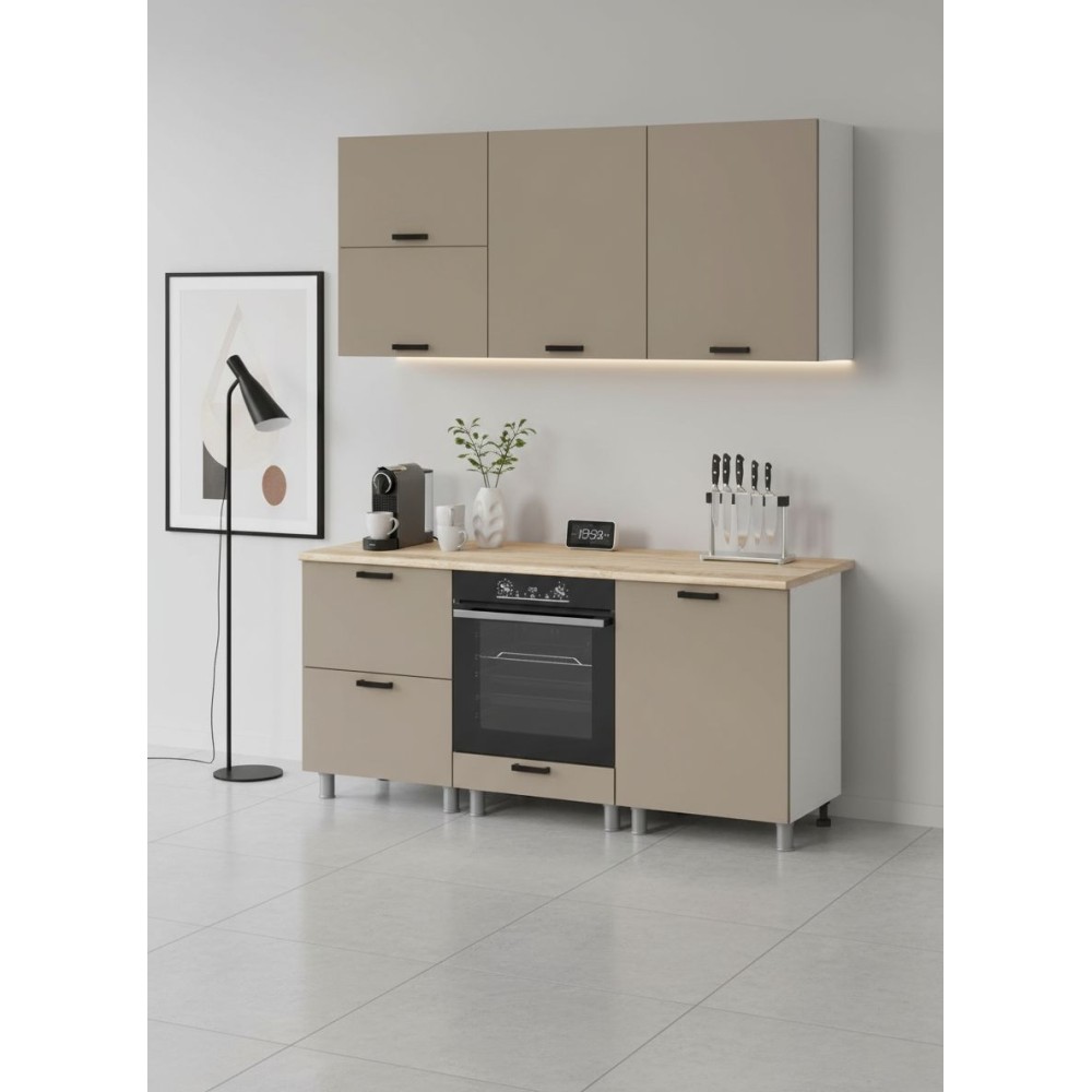 Материал устойчив к выцветанию и воздействию бытовой химии, прост в уходе и рассчитан на длительную эксплуатацию. Поверхность обладает повышенными гидрофобными свойствами, что делает кухню практичной и удобной для ежедневного использования.