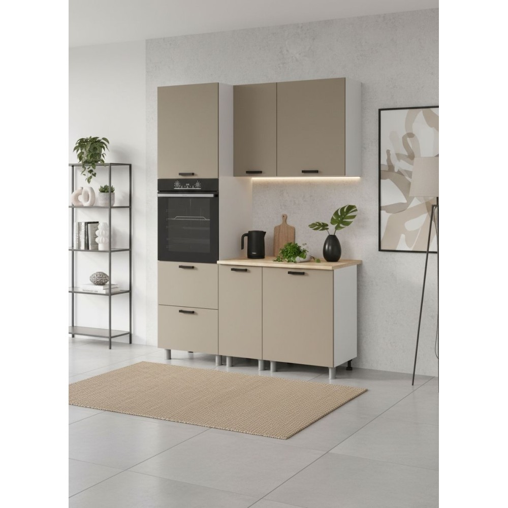 Материал устойчив к выцветанию и воздействию бытовой химии, прост в уходе и рассчитан на длительную эксплуатацию. Поверхность обладает повышенными гидрофобными свойствами, что делает кухню практичной и удобной для ежедневного использования.