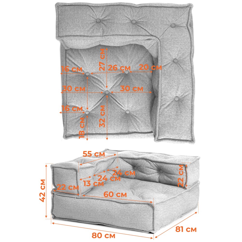 Представляем вам универсальный элемент для создания уютного пространства – бескаркасный угловой модуль. Этот компактный и многофункциональный элемент является частью инновационной системы диванов-трансформеров. Он легко трансформируется в самостоятельный предмет мебели: будь то удобный пуф, стильный столик или компактное кресло. Создайте свой идеальный интерьер: Гибкость конфигураций: Приобретая два и более таких модуля, вы получаете безграничные возможности для мебельных композиций. Собирайте диваны различных форм и размеров, а также комфортные кровати. Регулируемая высота: Для достижения желаемой высоты сиденья или создания многоуровневых зон, модули можно ставить друг на друга. Экономия пространства: Идеальное решение для современных городских квартир и загородных домов. Прекрасно подходит для организации лаунж-зон, гостиных и спален. Преимущества, которые вас приятно удивят: Легкость и мобильность: Отсутствие жесткого каркаса делает транспортировку и перемещение модуля невероятно простыми. Надежность и комфорт: Несмотря на свою легкость, модуль обладает достаточной плотностью наполнения, чтобы выдерживать вес взрослого человека и сохранять форму. Стабильность: Специальное наполнение обеспечивает надежную фиксацию модуля на месте, предотвращая его смещение. Собирайте свой комплект по частям: Вы можете выбрать модули одинаковой ширины и глубины, чтобы создать идеальную комбинацию: Угловой элемент для завершения композиции. Прямой модуль для создания диванов и кроватей. Пуф для дополнительного комфорта и функциональности. Не обязательно покупать весь комплект сразу – вы можете постепенно расширять свою мебельную систему. Материалы и дизайн: Обивка выполнена из трендового велюра букле, приятного на ощупь и стильного. Внутреннее наполнение из натуральных волокон гарантирует исключительный комфорт как при сидении, так и при отдыхе. Эксклюзивный дизайн подчеркнет индивидуальность вашего интерьера. Уход и практичность: Велюр букле легко чистится как специальными средствами для мебели, так и обычным мыльным раствором. Произведено в России. Готово к использованию сразу: Просто снимите упаковку, и ваш новый элемент мебели готов радовать вас! Доступные модели: Модуль мягкий прямой Miracle (велюр/букле, VT shape silver, 82x81x24 см) Модуль мягкий нижний Miracle (велюр/букле, VT shape silver, 82x81x24 см) Модуль мягкий угловой Miracle (велюр/букле, VT shape silver, 82x81x24 см).
