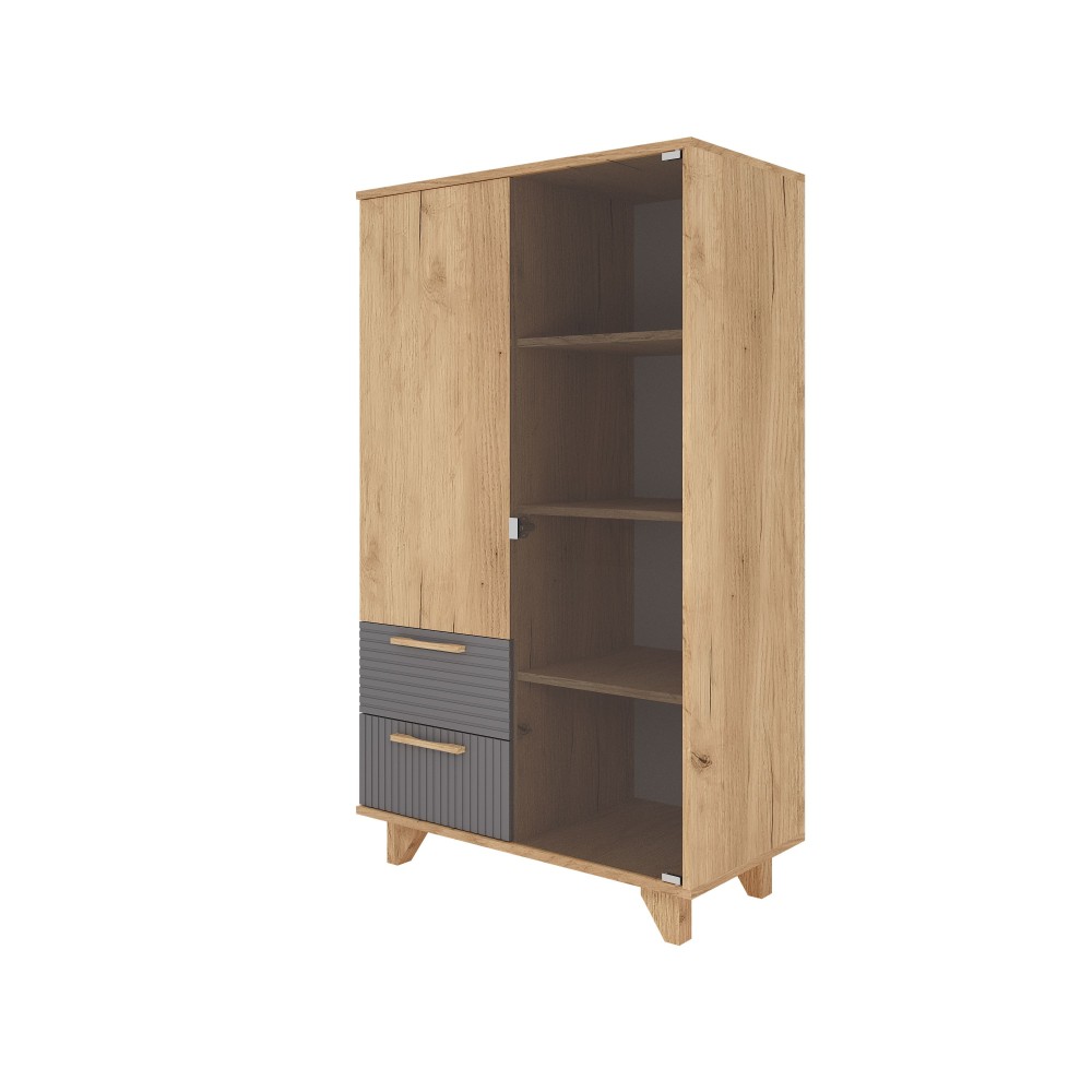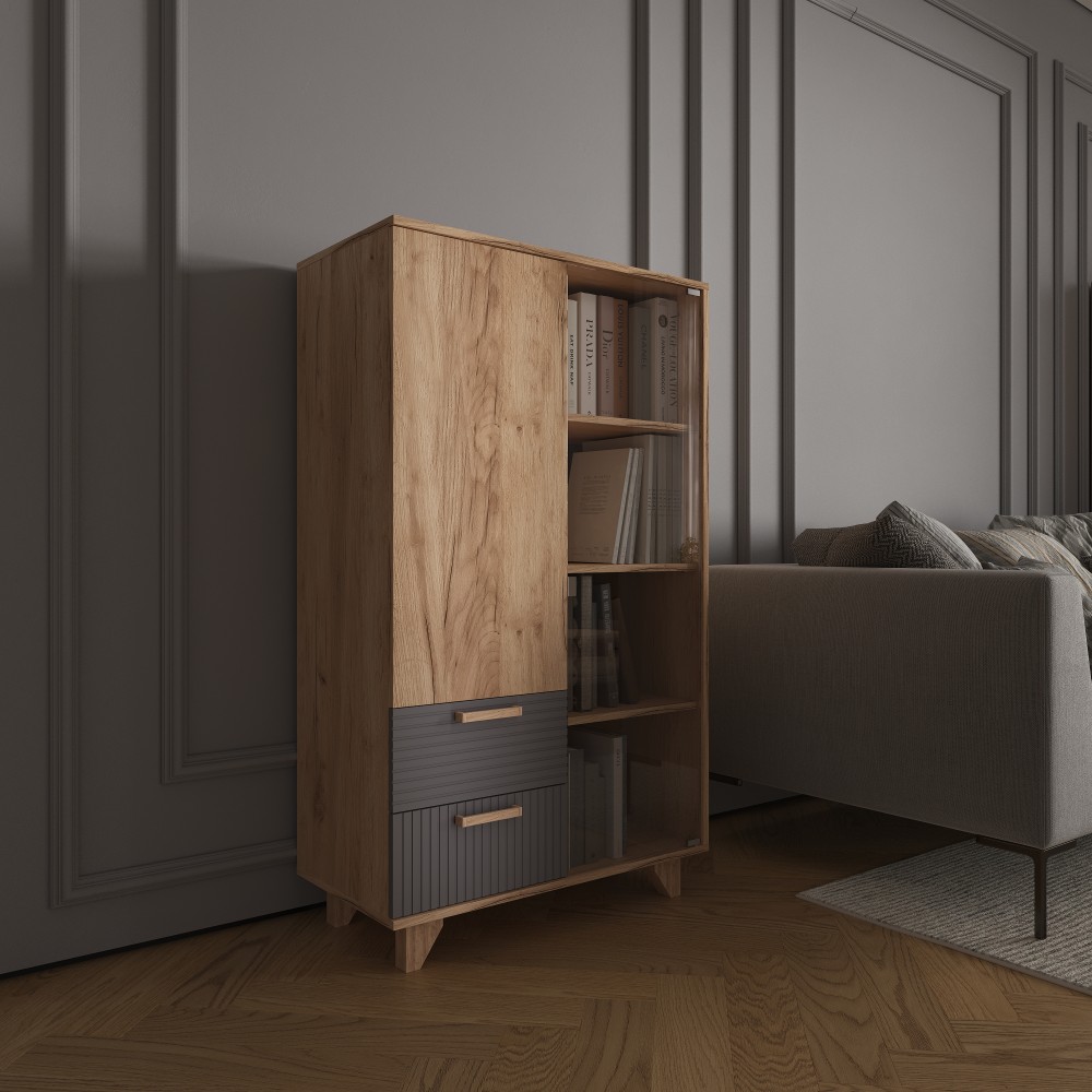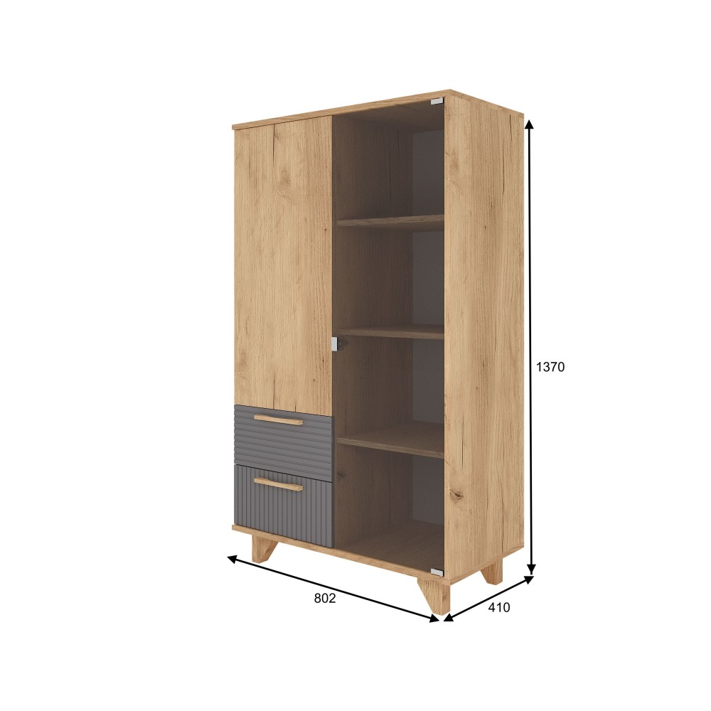 МС Ньёрд Шкаф-Витрина Дуб вотан — функциональный модуль для хранения и демонстрации посуды, книг или декоративных элементов. Остеклённые фасады подчёркивают содержимое и добавляют интерьеру аккуратности. Модель подходит для гостиной или столовой зоны. Сочетает практичность хранения и декоративную функцию.