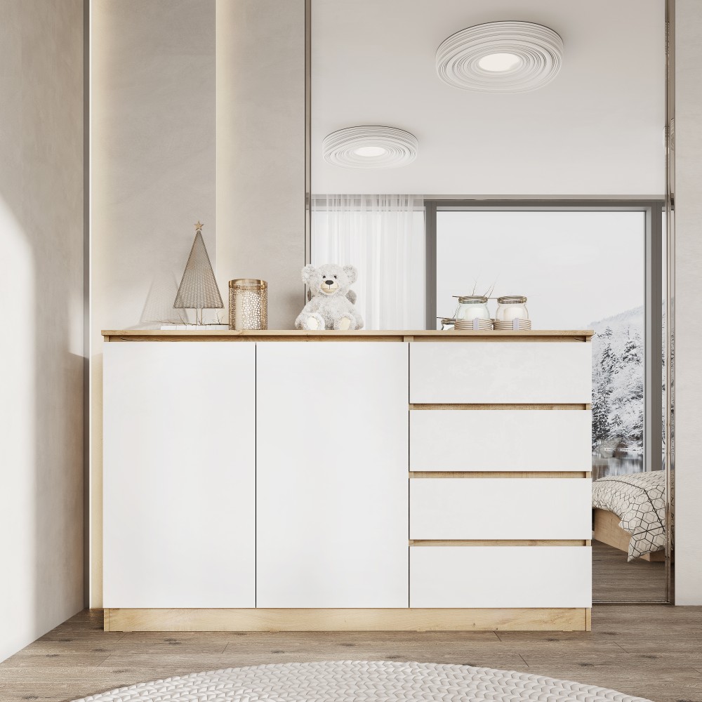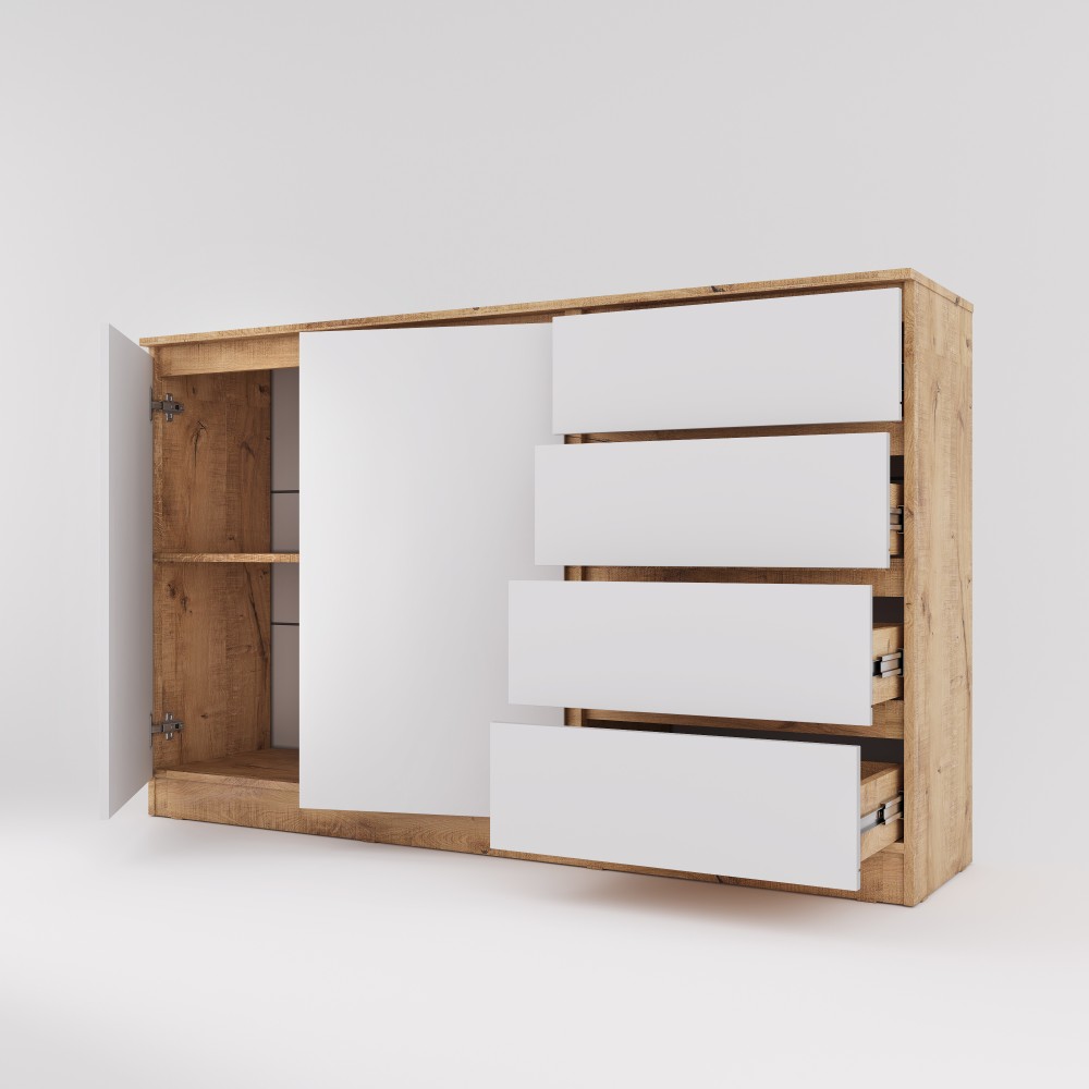 МС Охта Лайт Комод 1600.4 Дуб ВотанБелый гладкий — практичное решение для хранения одежды, текстиля и бытовых принадлежностей. Продуманное внутреннее наполнение позволяет удобно распределить вещи и поддерживать порядок. Комод подходит для использования в спальне, гостиной или прихожей. Лаконичный дизайн делает модель универсальной для современных интерьеров.