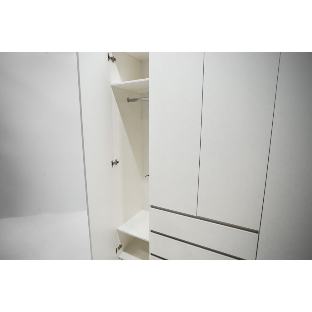МС Охта Лайт Шкаф 1600.3 Белый гладкий — вместительное решение для организации хранения одежды и текстиля. Закрытая конструкция помогает поддерживать визуальный порядок в помещении. Шкаф рассчитан на регулярную эксплуатацию и удобен в повседневном использовании. Подходит для спальни, гостиной или прихожей.