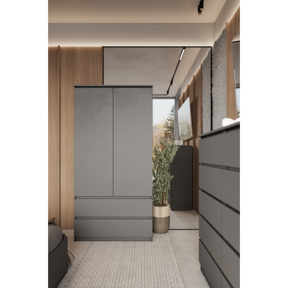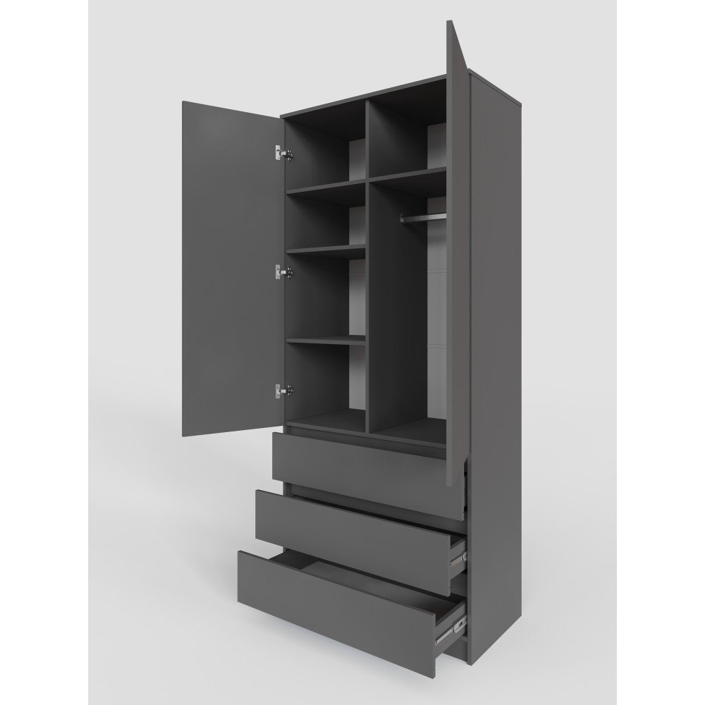 МС Охта Лайт Шкаф 900.3 Антрацид — вместительное решение для организации хранения одежды и текстиля. Закрытая конструкция помогает поддерживать визуальный порядок в помещении. Шкаф рассчитан на регулярную эксплуатацию и удобен в повседневном использовании. Подходит для спальни, гостиной или прихожей.