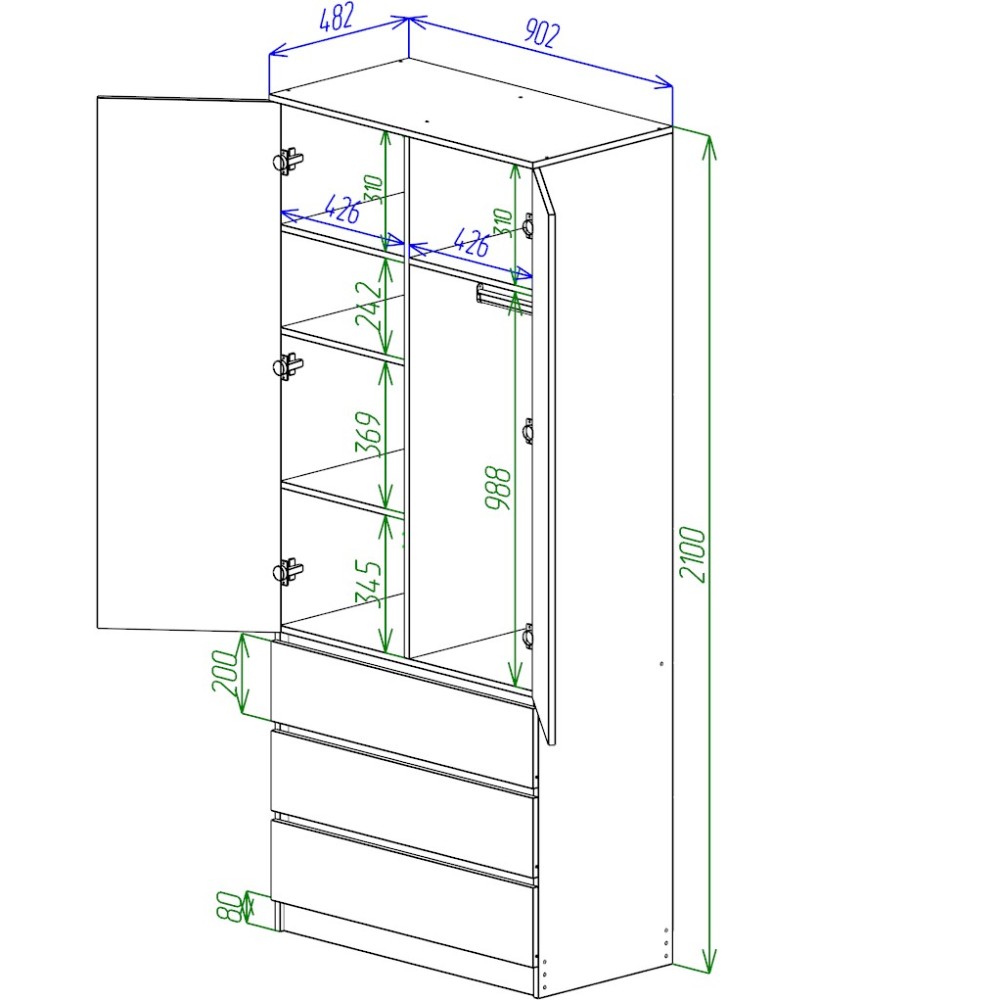 — Механизм открывания: Распашные двери