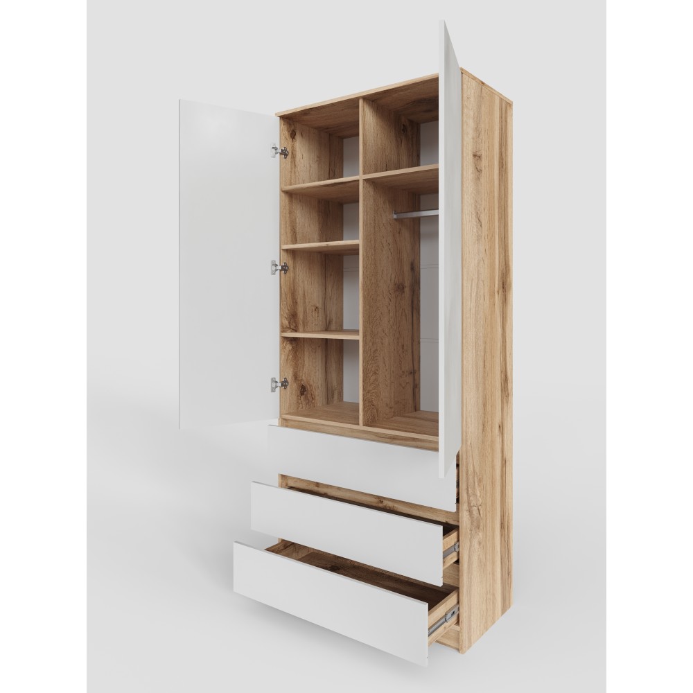 МС Охта Лайт Шкаф 900.3 Дуб ВотанБелый гладкий — вместительное решение для организации хранения одежды и текстиля. Закрытая конструкция помогает поддерживать визуальный порядок в помещении. Шкаф рассчитан на регулярную эксплуатацию и удобен в повседневном использовании. Подходит для спальни, гостиной или прихожей.