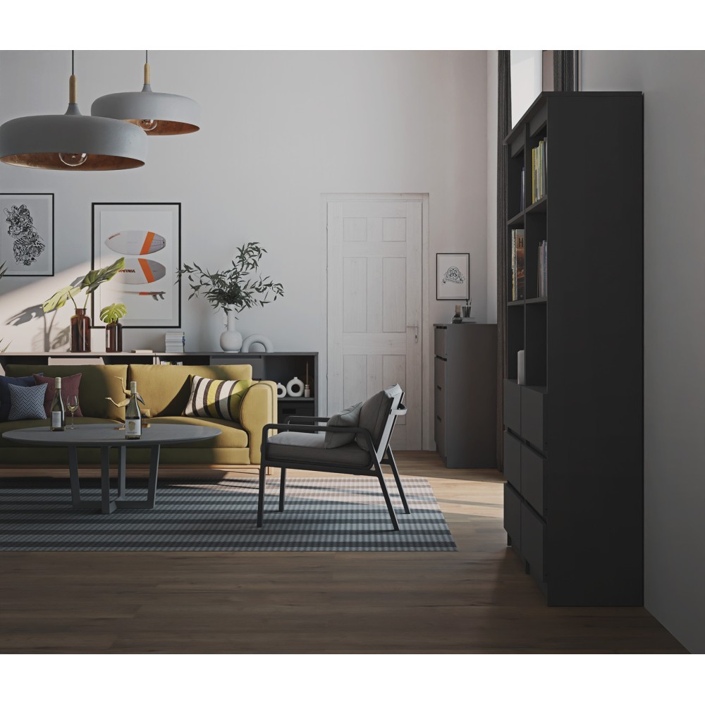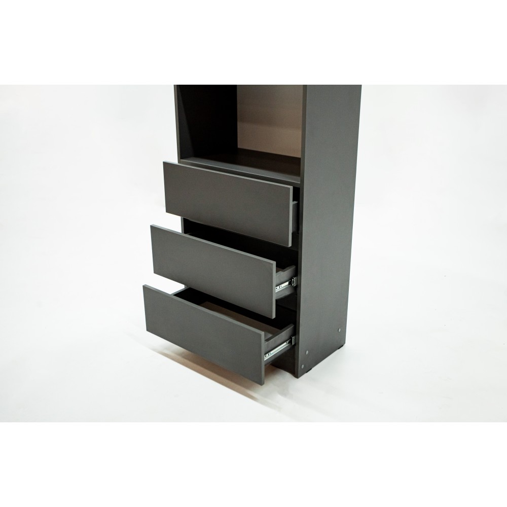 МС Охта Лайт Стеллаж 600.3 Антрацид — удобная система открытого хранения для книг, декора и предметов повседневного использования. Вертикальная конструкция позволяет рационально использовать пространство комнаты. Стеллаж помогает визуально облегчить интерьер и может использоваться для зонирования помещения. Подходит для жилых и рабочих пространств.