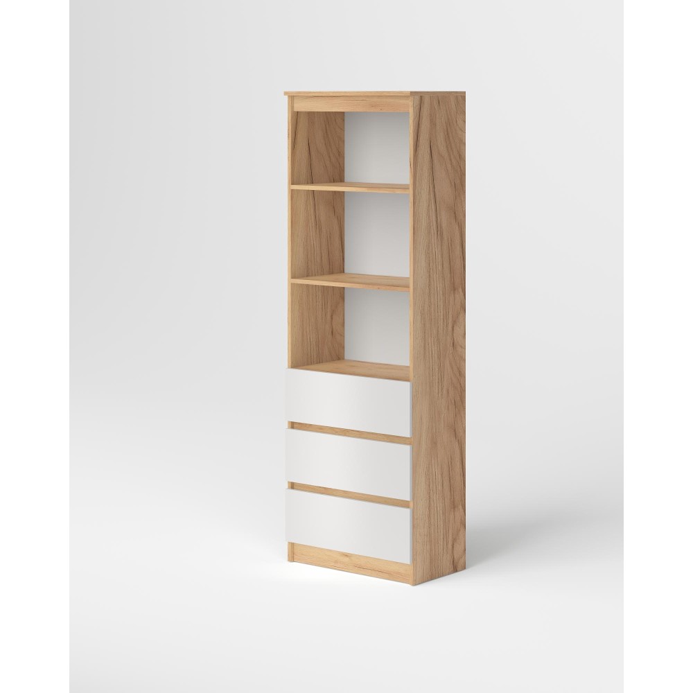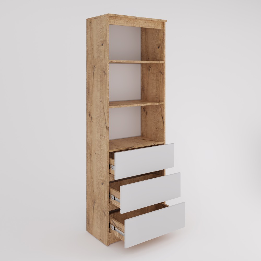 МС Охта Лайт Стеллаж 600.3 Дуб ВотанБелый гладкий — удобная система открытого хранения для книг, декора и предметов повседневного использования. Вертикальная конструкция позволяет рационально использовать пространство комнаты. Стеллаж помогает визуально облегчить интерьер и может использоваться для зонирования помещения. Подходит для жилых и рабочих пространств.