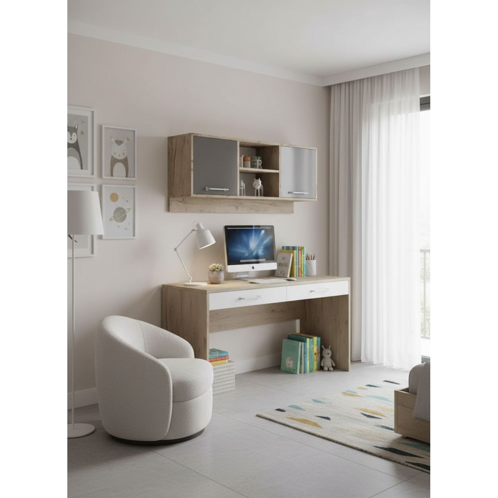 Навесная конструкция позволяет рационально использовать пространство, освобождая пол и визуально облегчая обстановку. Секция отлично подходит для хранения книг, декора, аксессуаров или повседневных мелочей, сохраняя порядок и аккуратность в комнате.