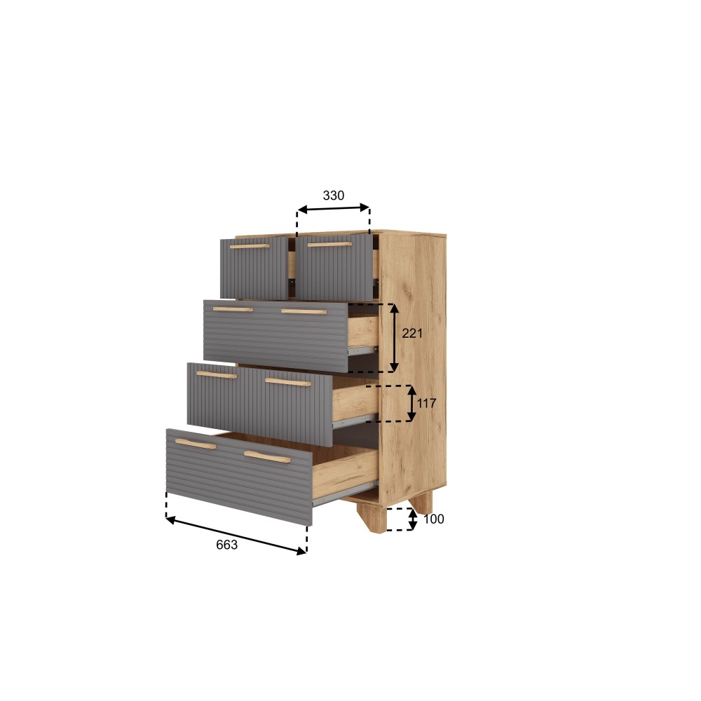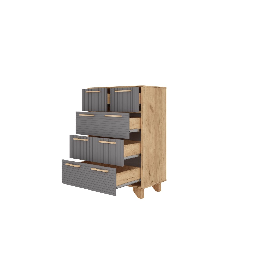 Ньерд Комод 700.5 Дуб вотан — практичное решение для хранения одежды, текстиля и бытовых принадлежностей. Продуманное внутреннее наполнение позволяет удобно распределить вещи и поддерживать порядок. Комод подходит для использования в спальне, гостиной или прихожей. Лаконичный дизайн делает модель универсальной для современных интерьеров.