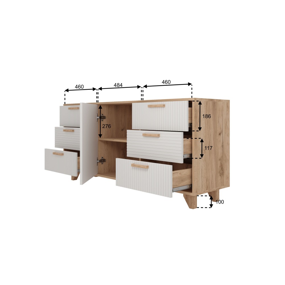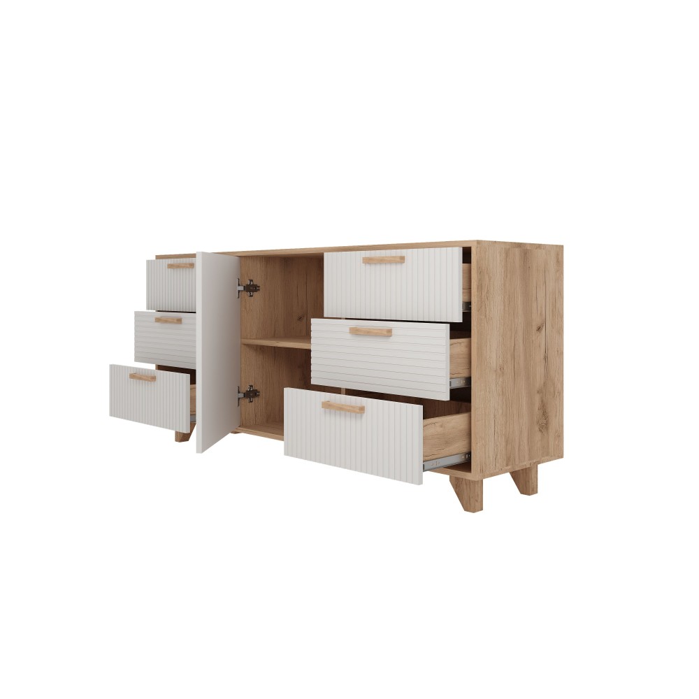 Ньёрд Комод 1,5 Дуб вотан — практичное решение для хранения одежды, текстиля и бытовых принадлежностей. Продуманное внутреннее наполнение позволяет удобно распределить вещи и поддерживать порядок. Комод подходит для использования в спальне, гостиной или прихожей. Лаконичный дизайн делает модель универсальной для современных интерьеров.