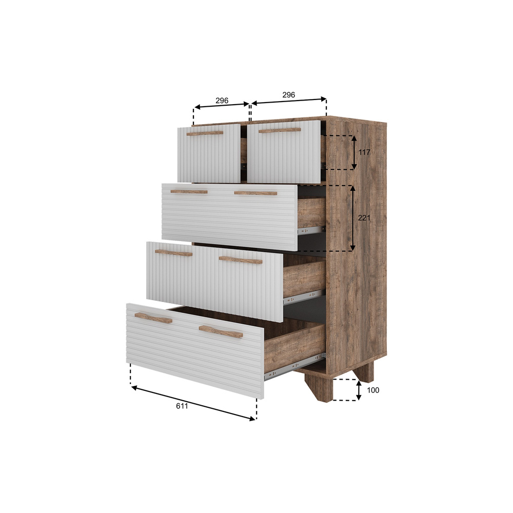 Комод из модульной серии Ньёрд дополнит современный интерьер комнаты. Вместительные ящики позволят организовать место хранения белья и одежды, аксессуаров и других нужных предметов.