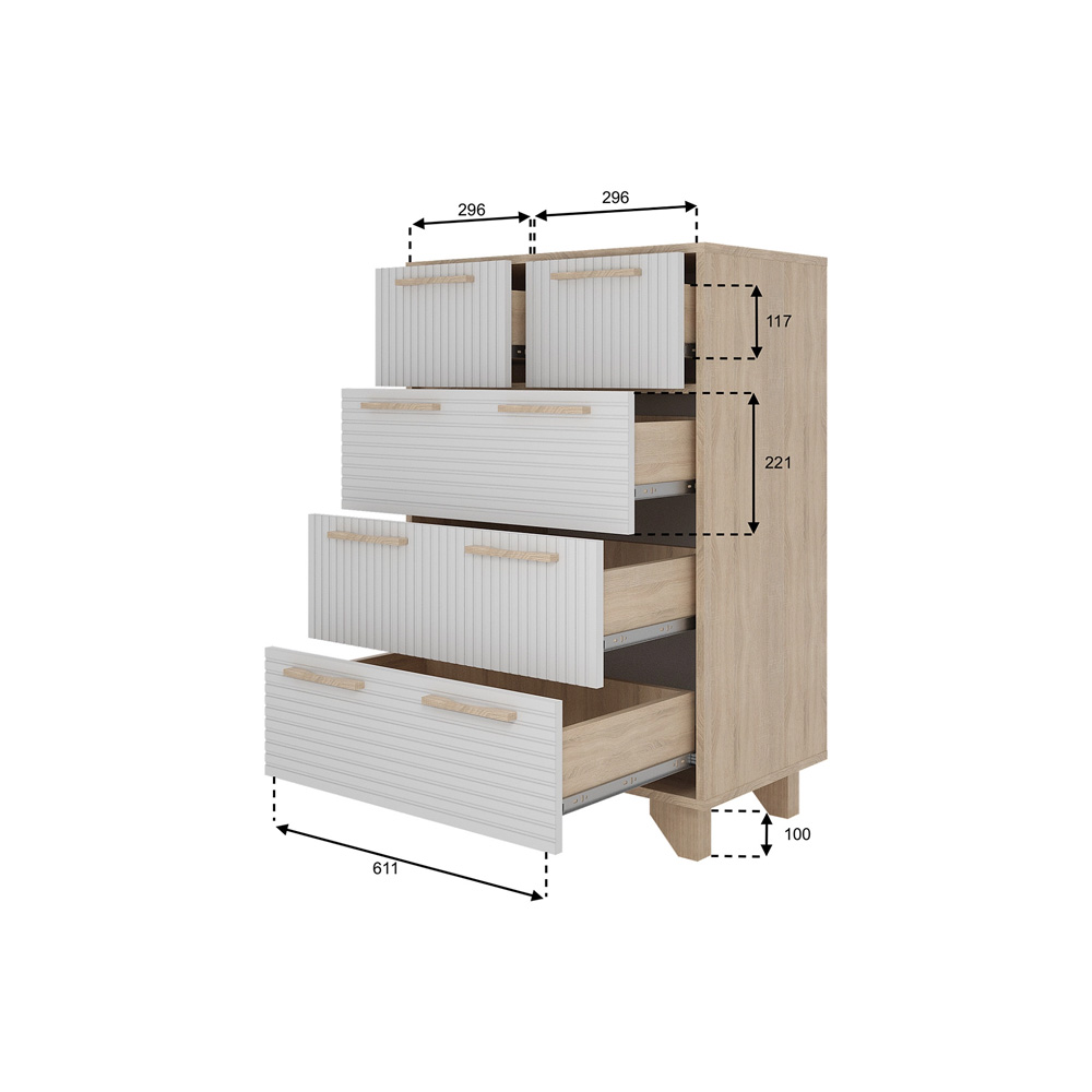 Комод из модульной серии Ньёрд дополнит современный интерьер комнаты. Вместительные ящики позволят организовать место хранения белья и одежды, аксессуаров и других нужных предметов.