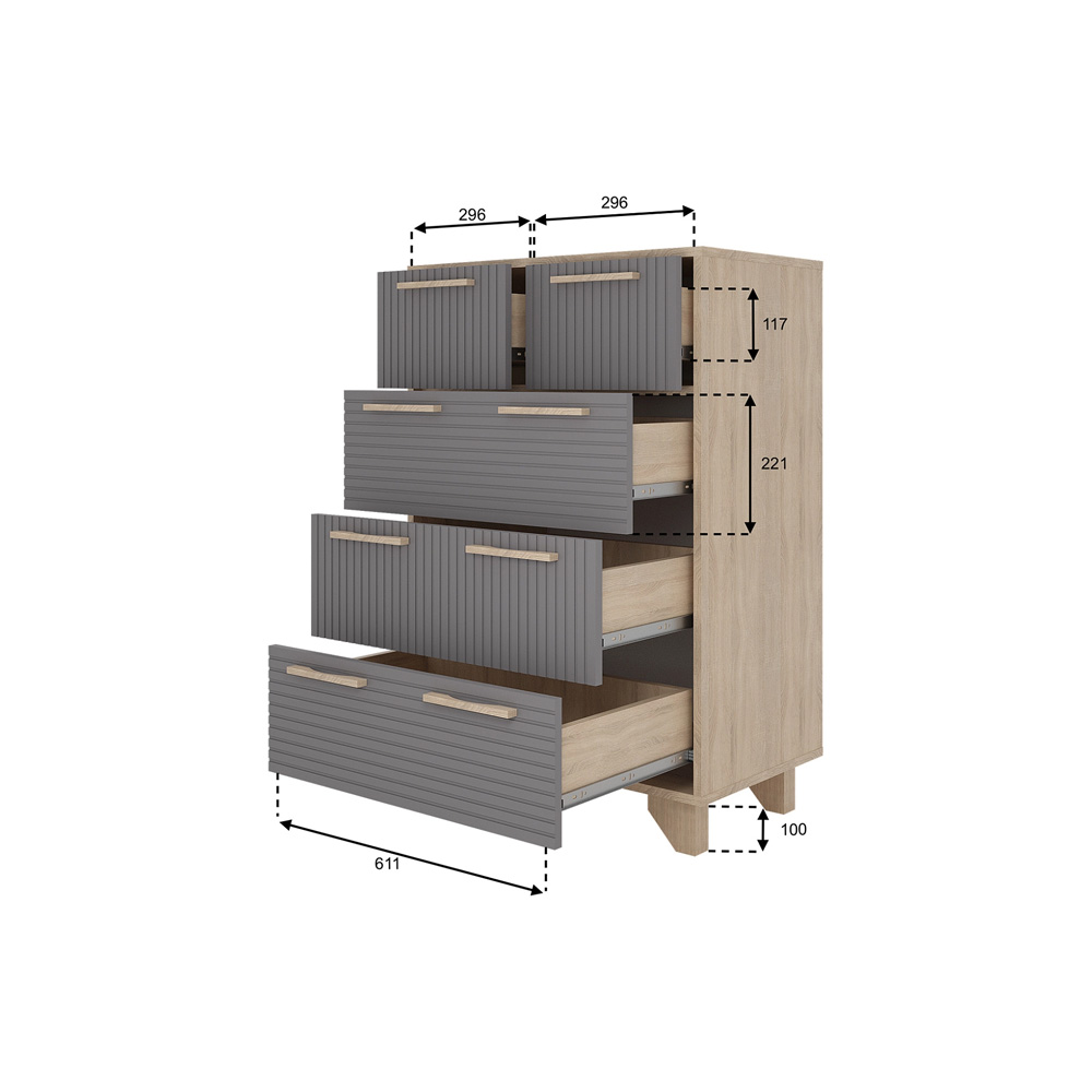 Комод из модульной серии Ньёрд дополнит современный интерьер комнаты. Вместительные ящики позволят организовать место хранения белья и одежды, аксессуаров и других нужных предметов.