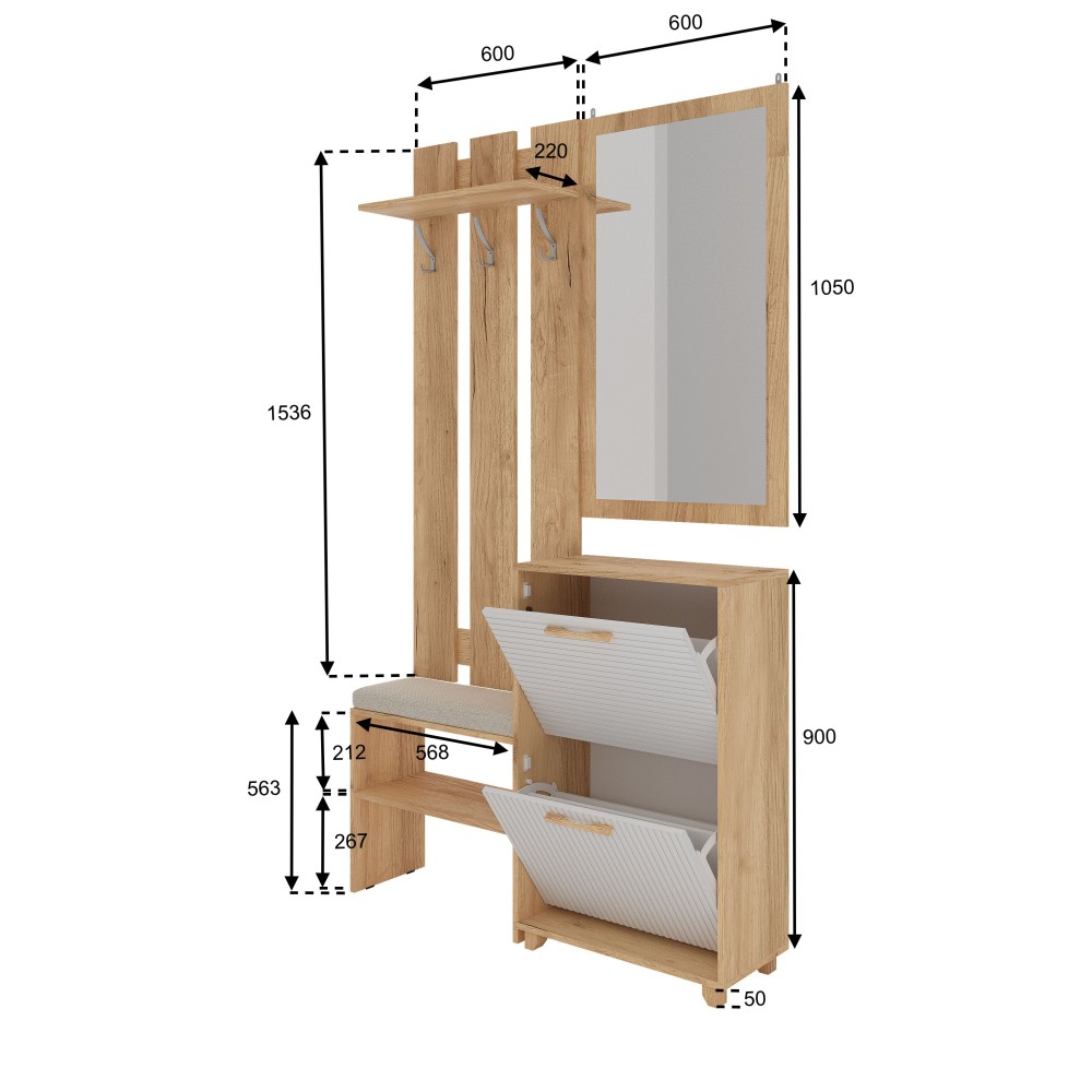Ньёрд Прихожая Дуб вотан — элемент модульной мебели, предназначенный для рациональной организации пространства. Модель может использоваться как самостоятельный предмет или в составе мебельной композиции. Продуманная конструкция обеспечивает удобство эксплуатации. Подходит для различных жилых помещений.