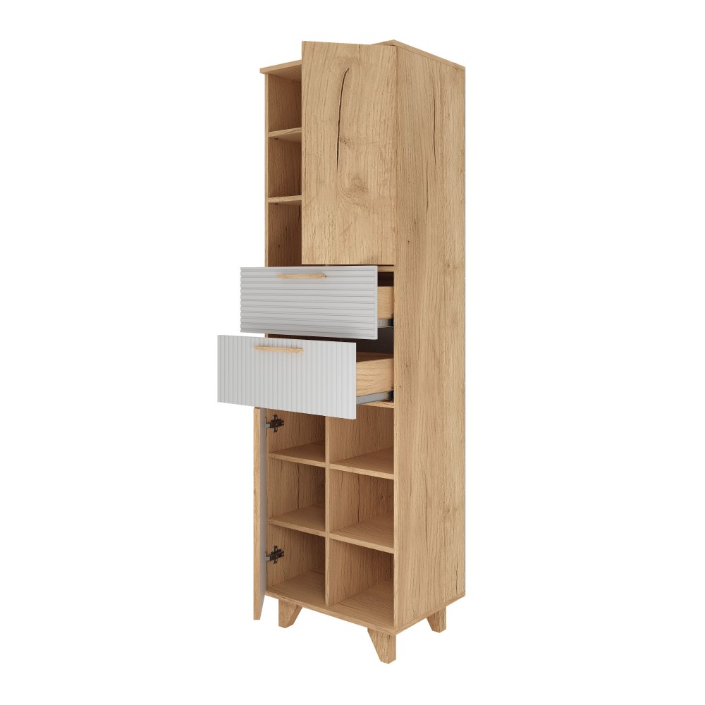 Ньёрд Стеллаж Дуб вотан — удобная система открытого хранения для книг, декора и предметов повседневного использования. Вертикальная конструкция позволяет рационально использовать пространство комнаты. Стеллаж помогает визуально облегчить интерьер и может использоваться для зонирования помещения. Подходит для жилых и рабочих пространств.
