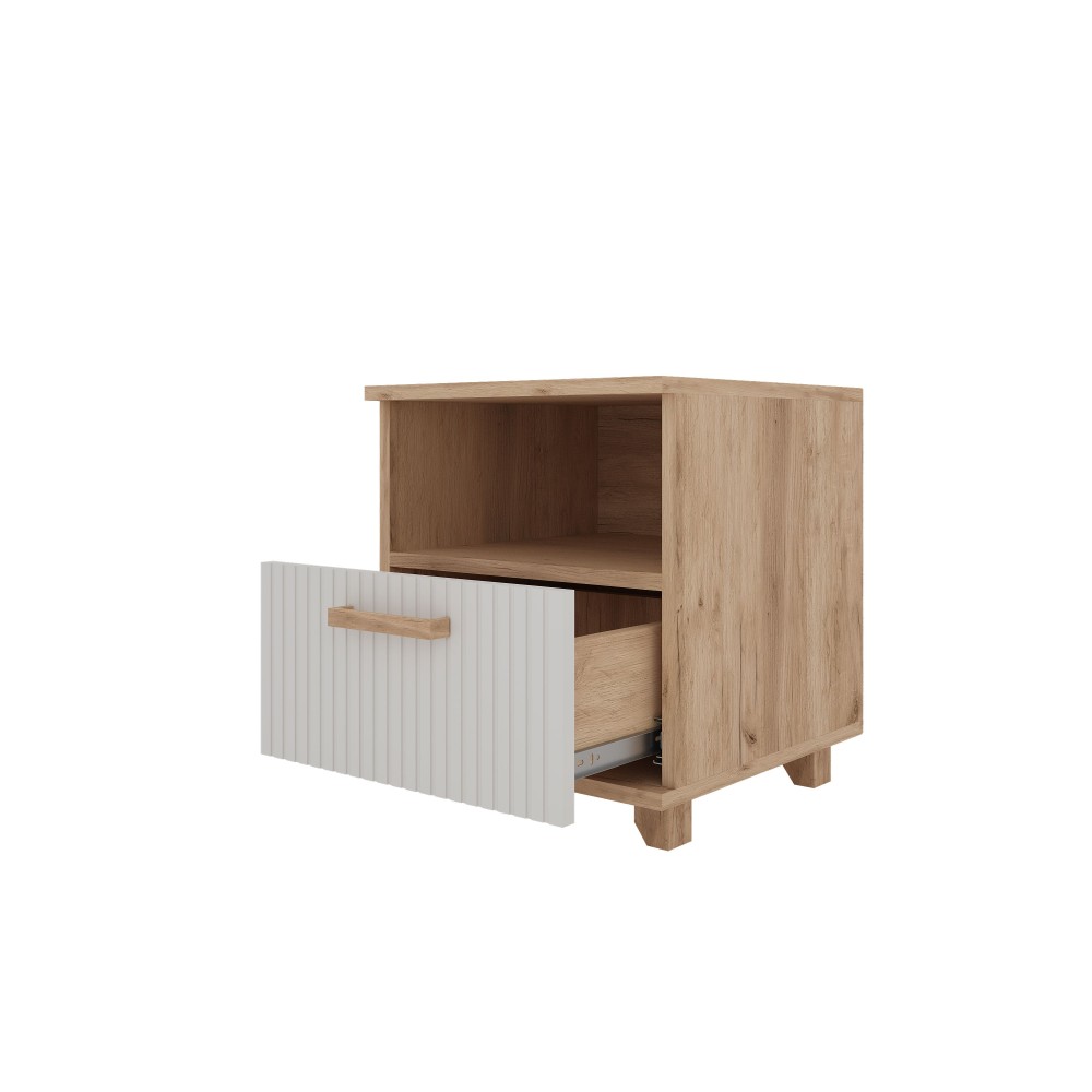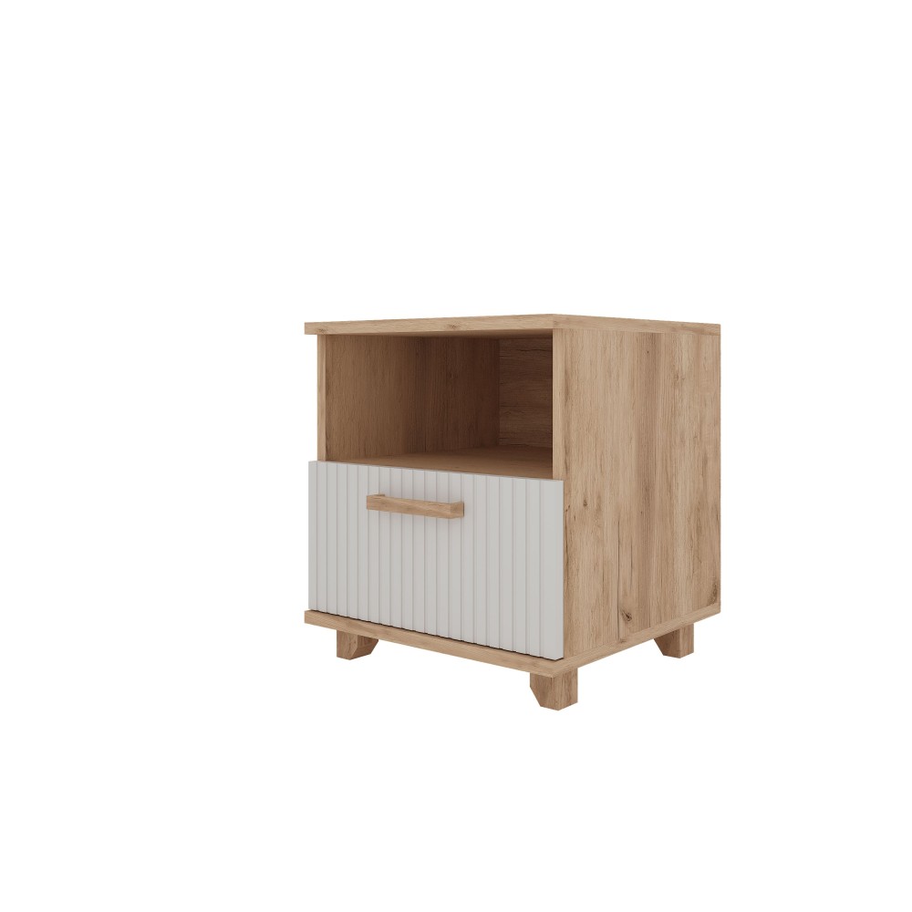 Ньёрд Тумба прикроватная 1я Дуб вотан — функциональный элемент спальни, предназначенный для хранения личных вещей и мелочей, которые должны быть под рукой во время отдыха. Компактный формат позволяет удобно разместить тумбу рядом с кроватью, не перегружая пространство. Поверхность подходит для размещения светильника, книги или мобильных аксессуаров. Модель гармонично дополняет интерьер и поддерживает порядок в зоне сна.