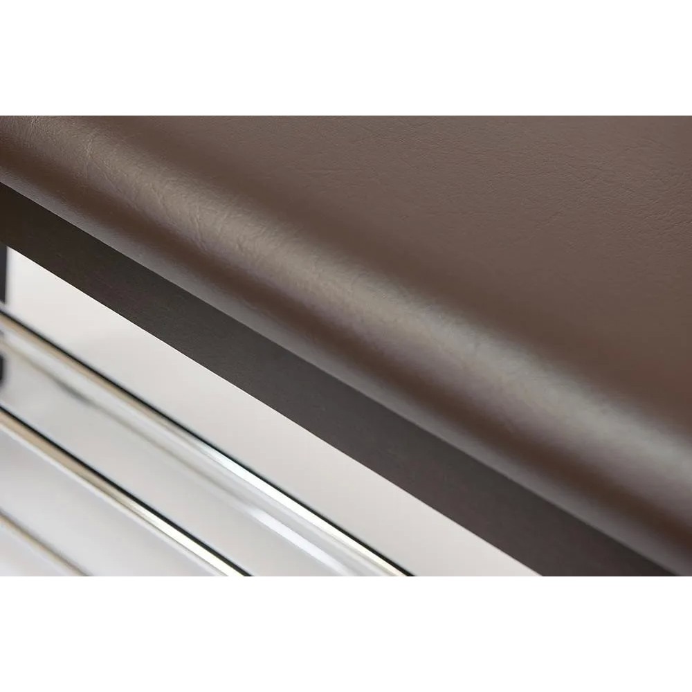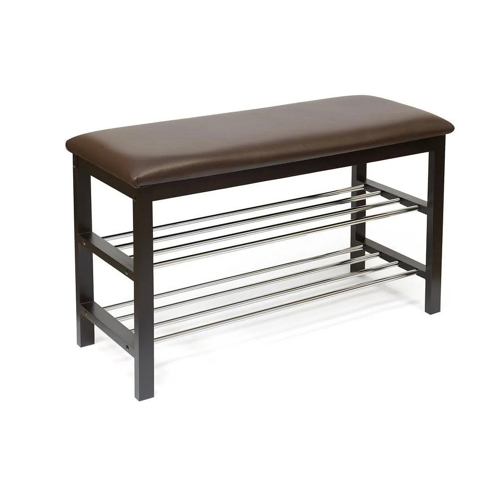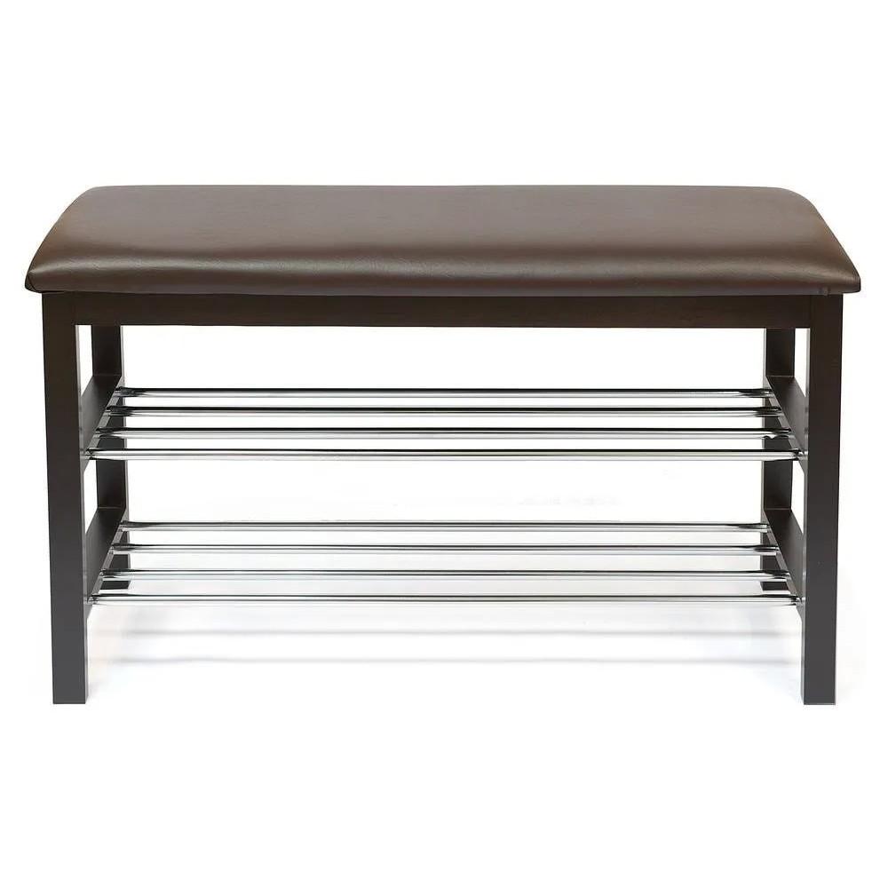 Стильная обувница-скамья из коллекции УЮТНЫЙ ДОМ отлично впишется в интерьер прихожей или гардеробной в вашем загородном доме или городской квартире. Надежный каркас модели, изготовленный из древесины березы, способен выдержать большие нагрузки. Мебель, сделанная из такого материала, не подвержена деформации, образованию трещин и царапин. Мягкое сиденье обувницы-скамьи обито экокожей. Экокожа - водонепроницаемый и долговечный материал. Модель имеет две вместительные металлические полки, подходящие для любой обуви. Сочетание коричневой обивки сиденья и боковых стоек основания с хромированными полками из реек поможет создать неповторимый образ любой обстановке, а также подчеркнуть безупречный вкус своего владельца. Обувница-скамья из коллекции УЮТНЫЙ ДОМ надежна, практична и основательна. Модель будет радовать вас долгие годы своей функциональностью, компактностью и первоначальным внешним видом. Модель очень проста в сборке, инструкция по сборке прилагается.