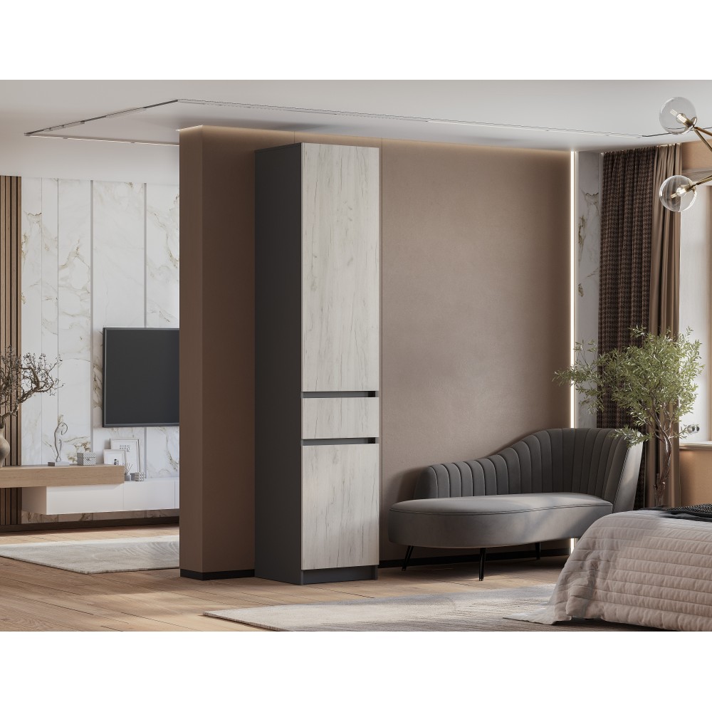 Дополнить интерьер вашей квартиры или дома можно с помощью функционального и стильного шкафа стеллажа "Багира" ШК-16. Он крепится к торцу соседнего модуля при помощи металлического уголка с заглушкой.