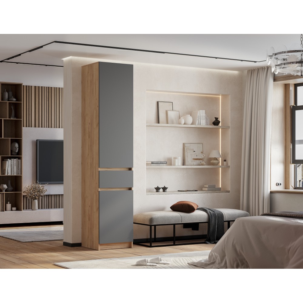 Дополнить интерьер вашей квартиры или дома можно с помощью функционального и стильного шкафа стеллажа "Багира" ШК-16. Он крепится к торцу соседнего модуля при помощи металлического уголка с заглушкой.