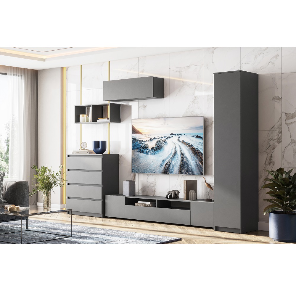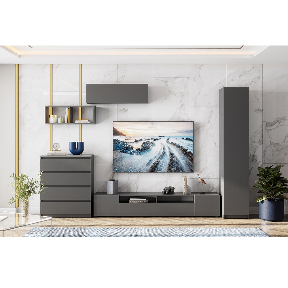 Однодверный шкаф в цвете графит серый идеально впишется в любой интерьер. Фасад выполнен из ЛДСП, что придает ему дополнительную прочность и долговечность. Внутри шкафа имеется несколько полок для хранения одежды и аксессуаров.