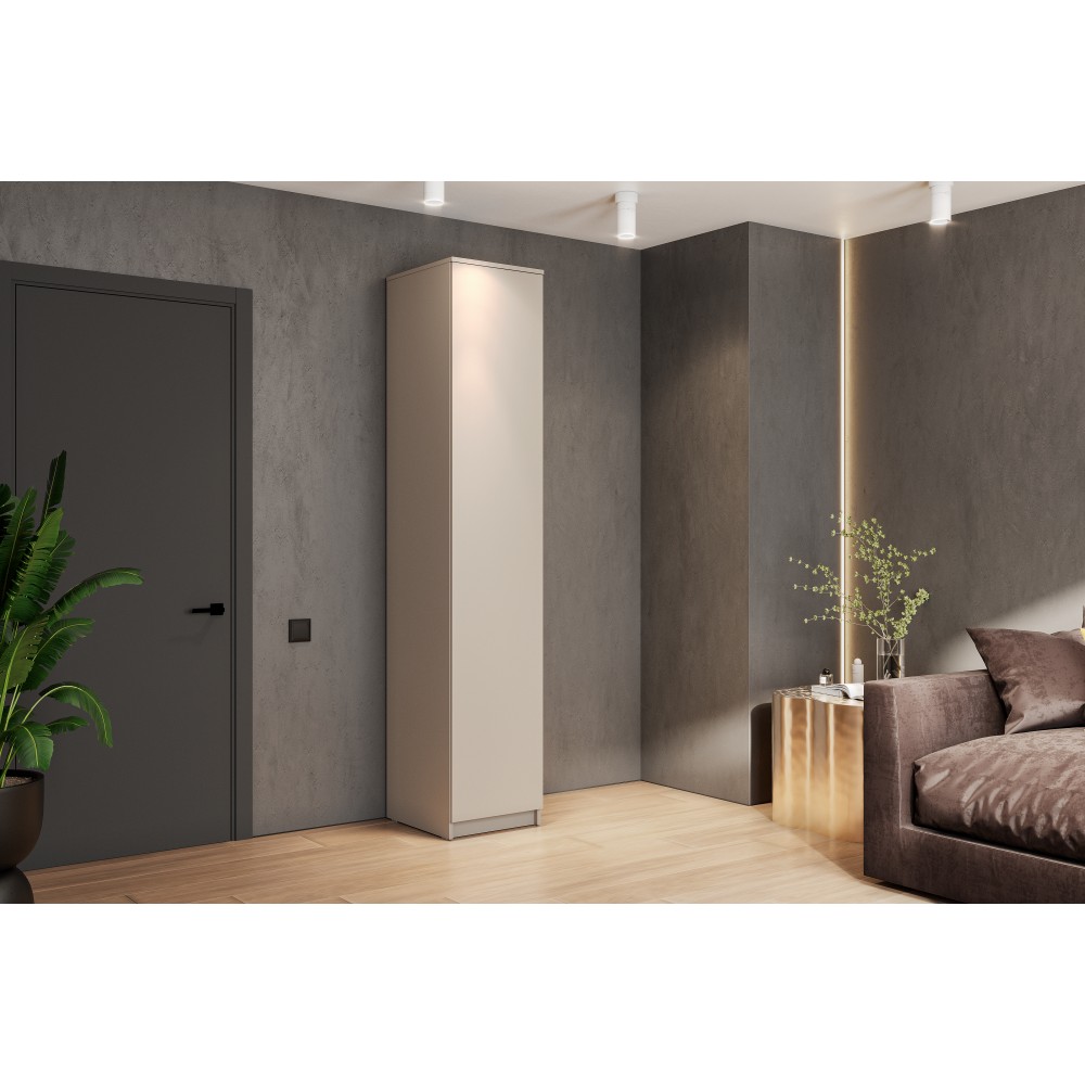 Однодверный шкаф идеально впишется в любой интерьер. Фасад выполнен из ЛДСП, что придает ему дополнительную прочность и долговечность. Внутри шкафа имеется несколько полок для хранения одежды и аксессуаров.