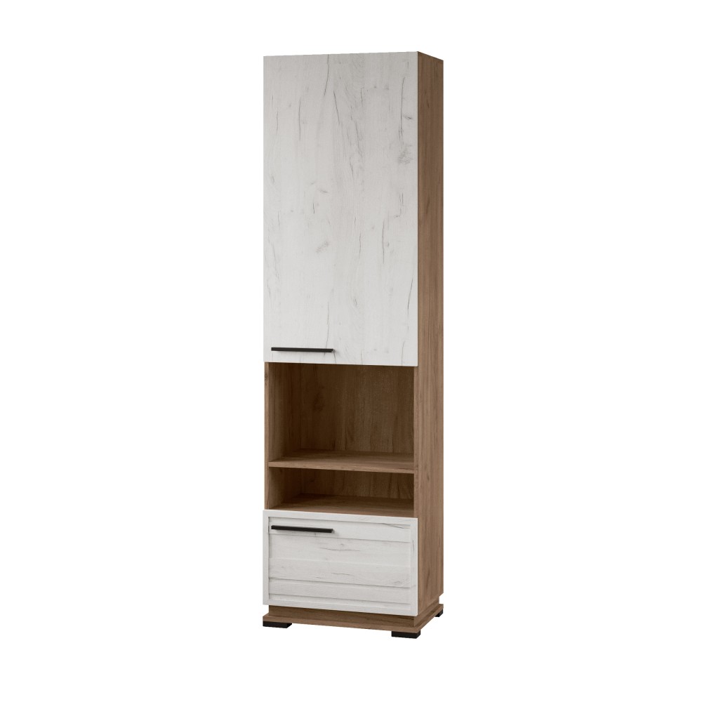 Пенал - незаменимый вид шкафа в любой гостиной. Шкаф-пеналМодена - отличный вариант для хранения вещей на закрытыхполках и в открытой секции. Прекрасно дополняет прочие модули коллекции и за счет своих габаритов вмещает большое количество предметов, от книг до домашней утвари и предметов декора. Нижняя дверца декорирована геометрическими вставками цвета ясень анкор светлый, что добавляет шкафу-пеналу стиля.